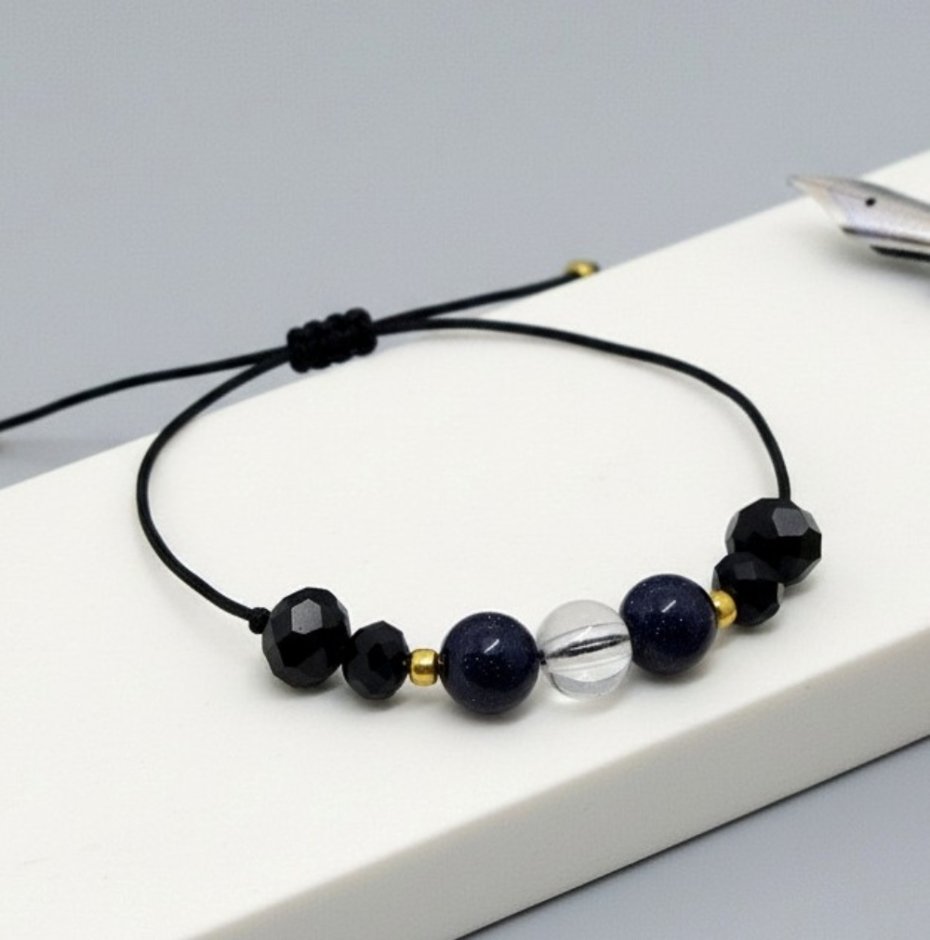 B3041 Bransoletka zaciągana na czarnym sznurku.