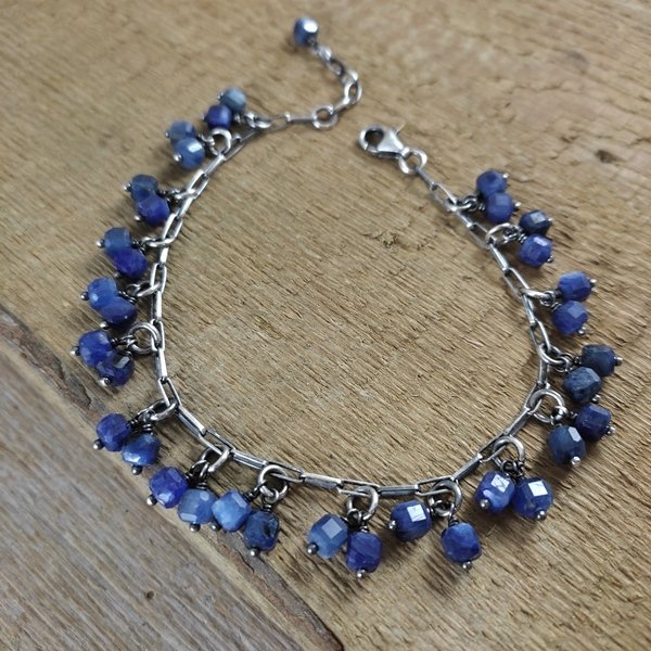 Bransoletka wykonana z sześcianów kyanitu ok. 4 mm. Całość dopełniona srebrem 925, oksydowanym i wypolerowanym.