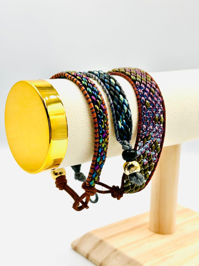 BRANSOLETKA ZE SKÓRY I KORALIKÓW SUPERDUO