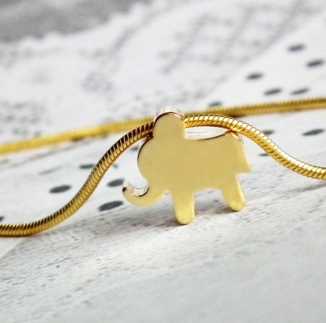 Delikatna, subtelna bransoletka ze ślicznym słonikiem pokrytym 16 karatowym złotem na łańcuszku typu ''żmijka''. Zapięcie typu '' karabińczyk''.