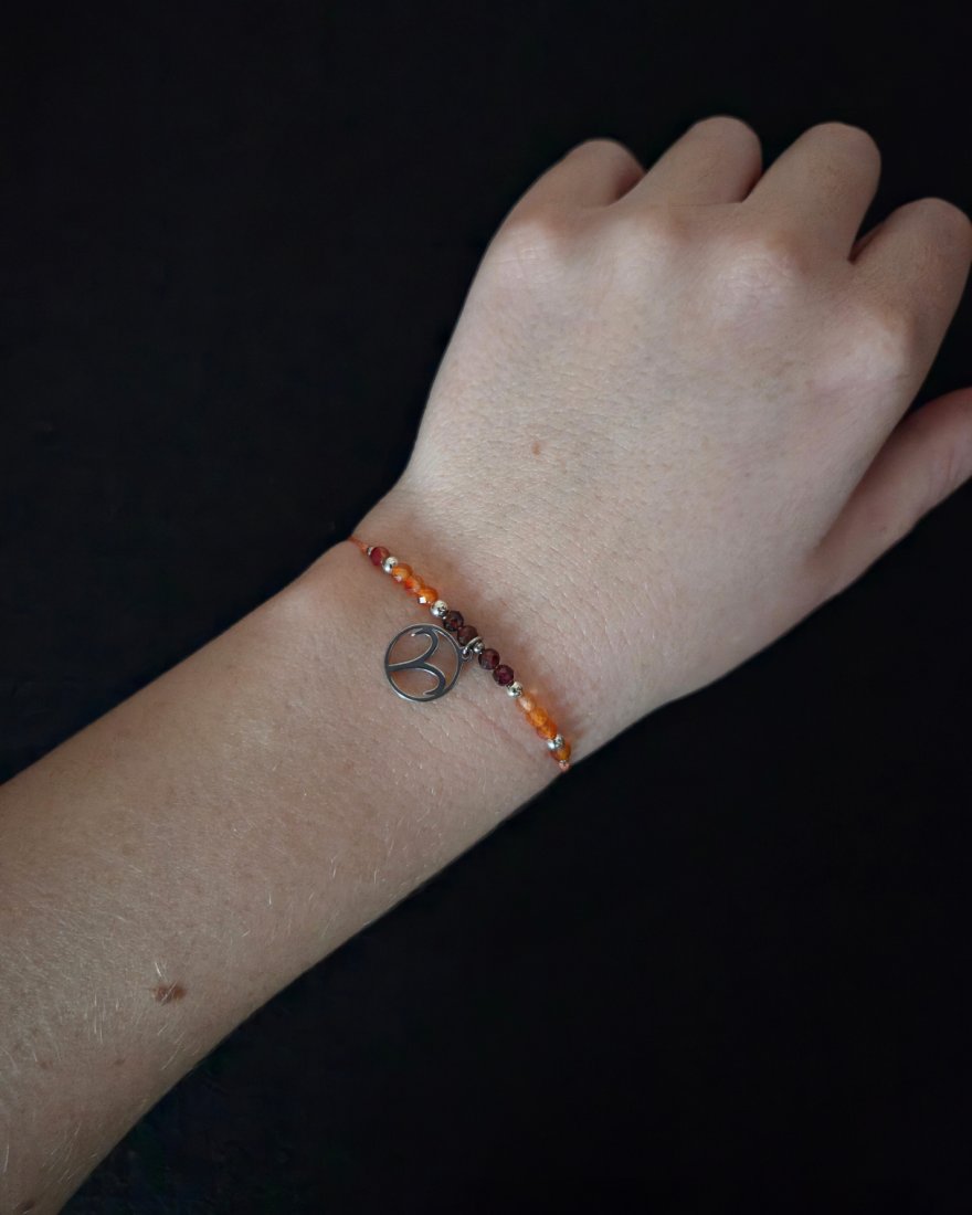 Połączenie karneolu i granatu odpowiada energii, śmiałości i żywiołowości Barana, podczas gdy hematyt wprowadza niezbędną równowagę i spokój. Wizualnie bransoletka odzwierciedla dokładnie to, czym jest Baran — siłą, pewnością siebie i wewnętrznym płomieniem.