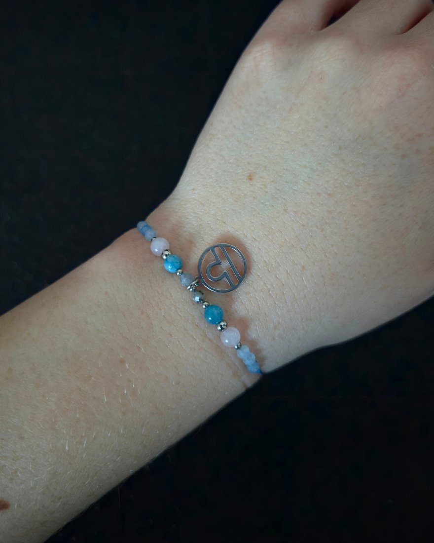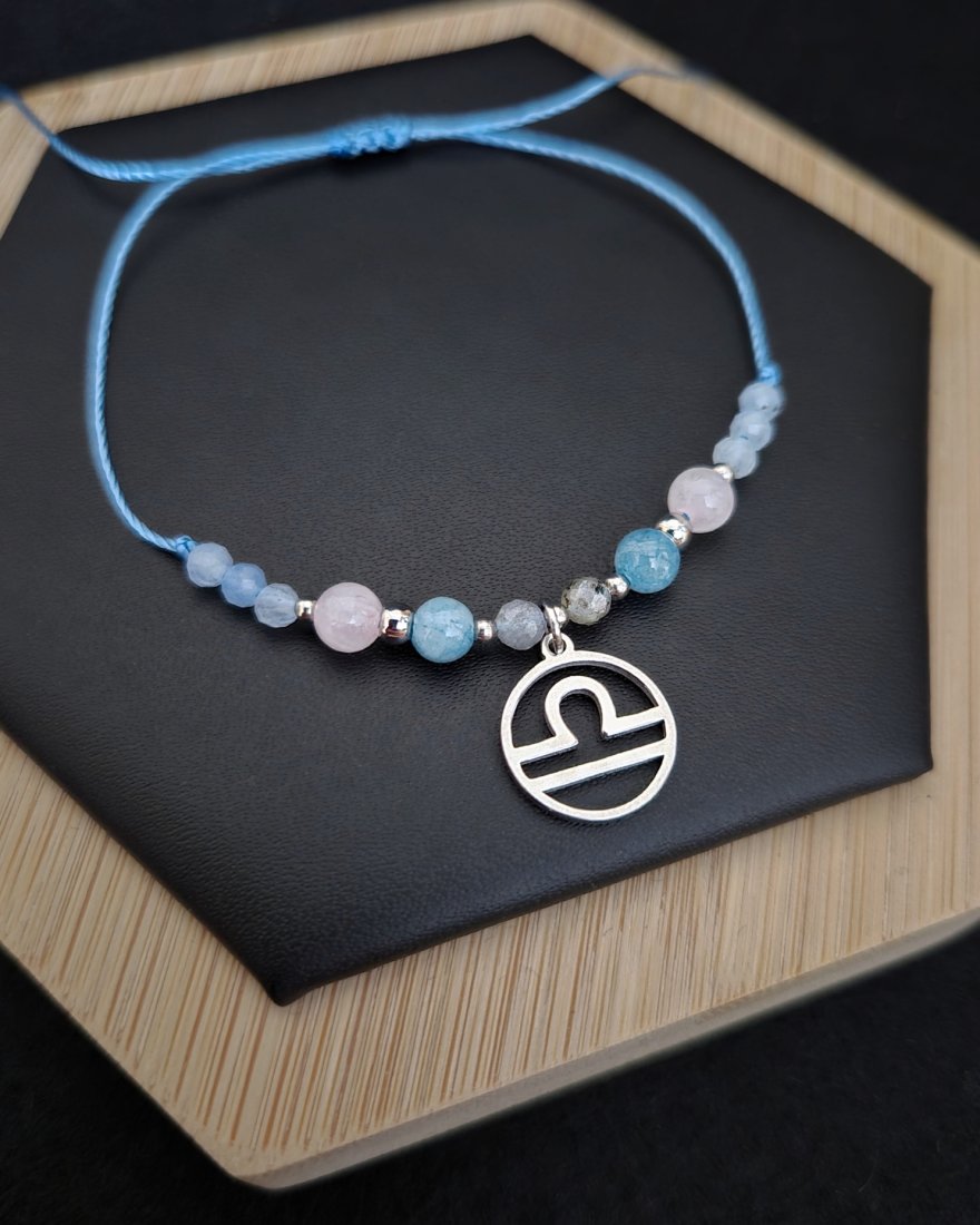 Bransoletka Zodiakalna "Waga" to subtelna, harmonijna kompozycja stworzona z myślą o osobach urodzonych pod znakiem Wagi — wrażliwych, empatycznych, ceniących piękno, równowagę i dobre relacje. Delikatne odcienie błękitu, pudrowego różu i opalizujących refleksów tworzą spokojną, elegancką całość, która oddaje potrzebę harmonii serca i umysłu. Srebrna zawieszka z symbolem Wagi dopełnia projekt, czyniąc z bransoletki osobisty talizman równowagi, miłości i wewnętrznego spokoju.