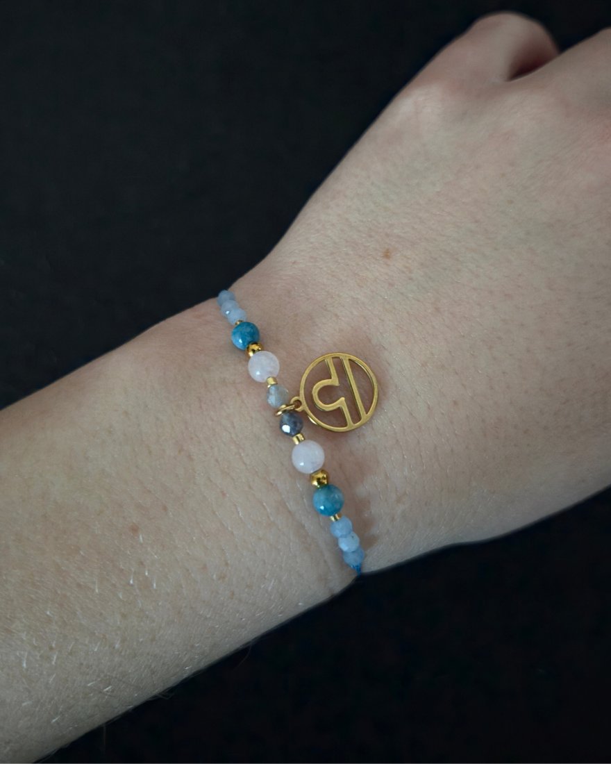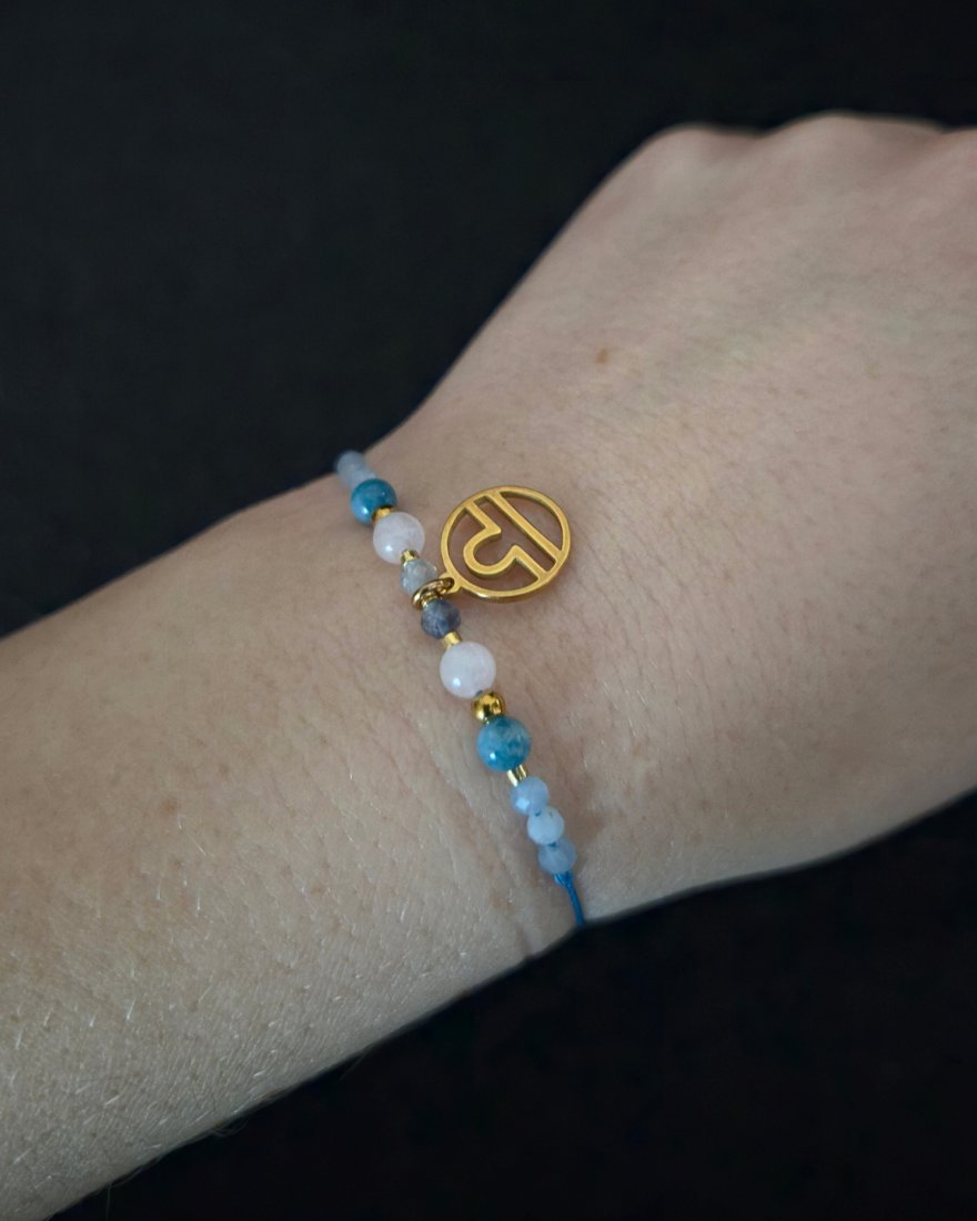 Bransoletka Zodiakalna "Waga" to subtelna, harmonijna kompozycja stworzona z myślą o osobach urodzonych pod znakiem Wagi — wrażliwych, empatycznych, ceniących piękno, równowagę i dobre relacje. Delikatne odcienie błękitu, pudrowego różu i opalizujących refleksów tworzą spokojną, elegancką całość, która oddaje potrzebę harmonii serca i umysłu. Złota zawieszka z symbolem Wagi dopełnia projekt, czyniąc z bransoletki osobisty talizman równowagi, miłości i wewnętrznego spokoju.