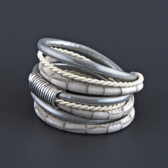 Tagi: #bransoletka z rzemyków, #brasnoletka zwijana, #szara, #szeroka bransoletka