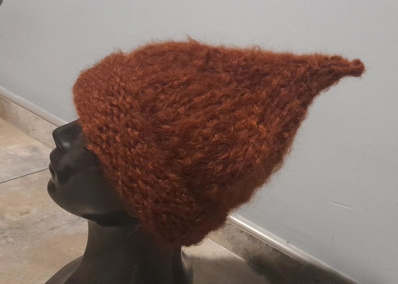 Wykonana na drutach z najwyższej jakości włóczki moherowej głowa manekin jest ok 1/3 mniejszy od przeciętnej głowy realnej
