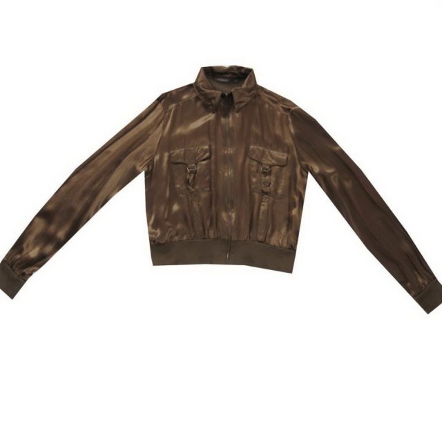 Krótka, brązowa kurtka z satyny. Cienki materiał, to nie jest strecz.