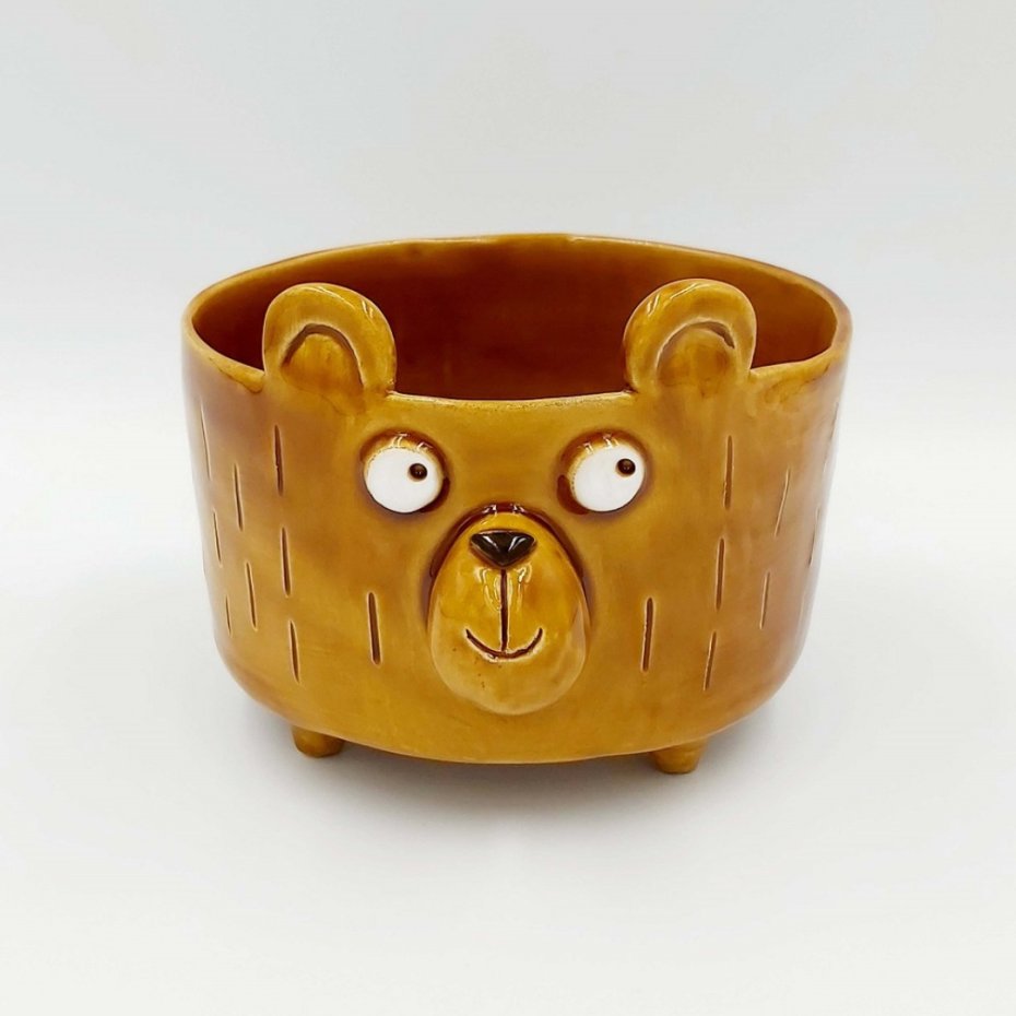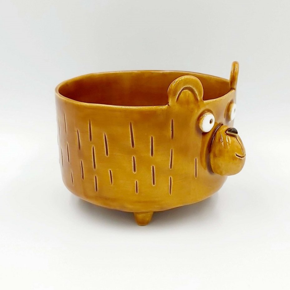 Ręcznie robiona, brązowa miseczka śniadaniowa w kształcie niedźwiadka. Miseczka ceramiczna, wr której możesz przechowywać owoce, słodycze. Może schować w niej swoje drobiazgi, czy wykorzystać ją jako ozdobę.