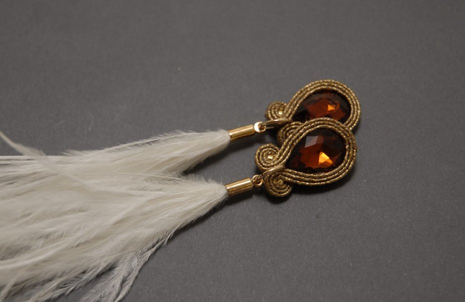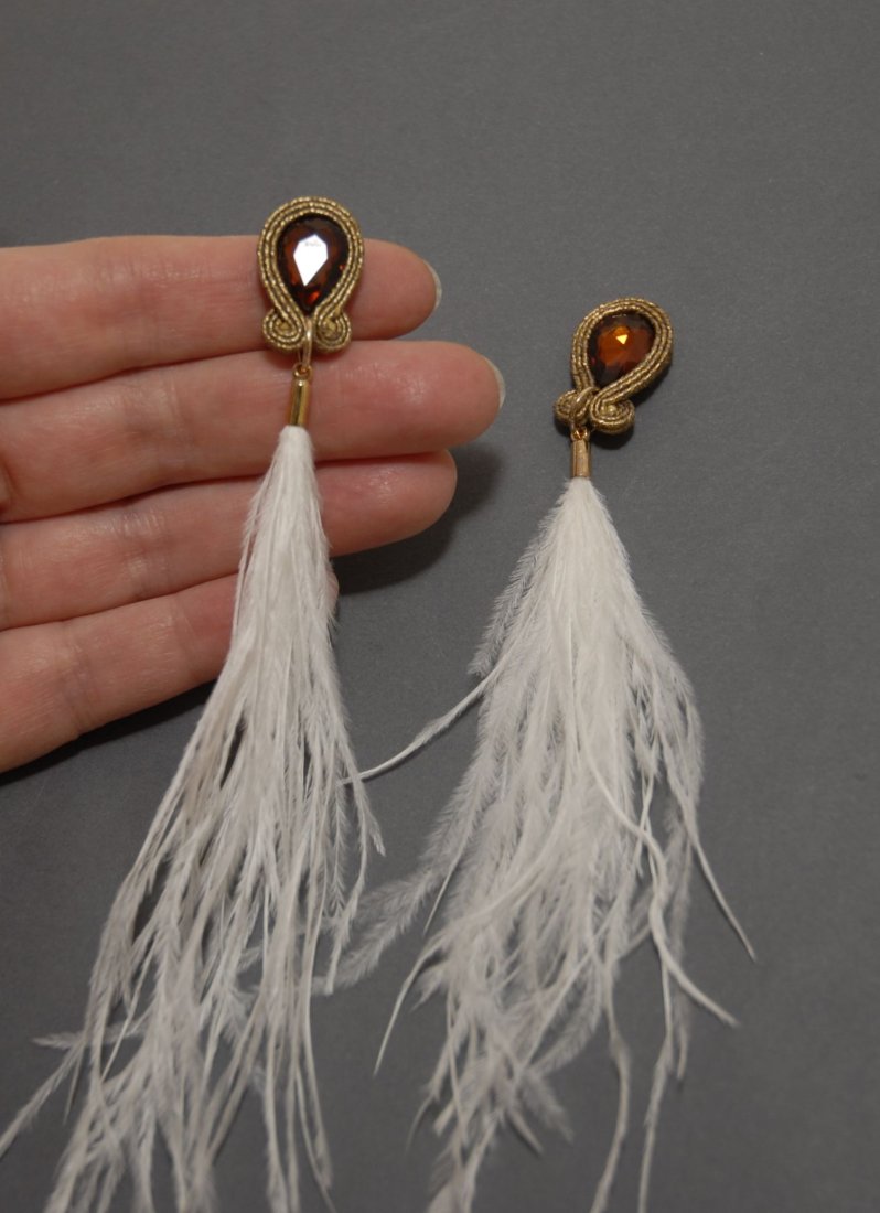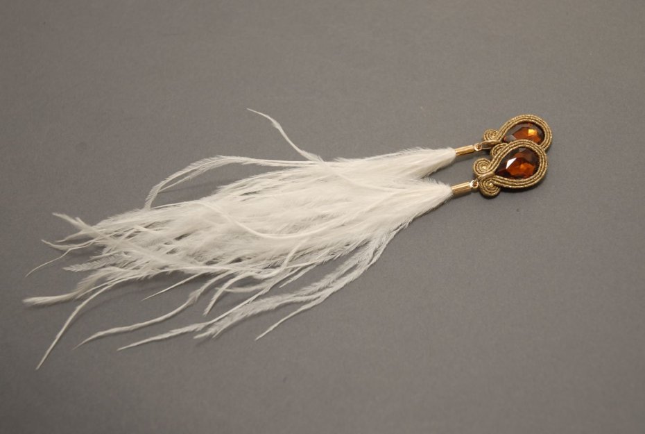 4.  > brązowo-białe klipsy sutasz z piórami (nr 7121937)