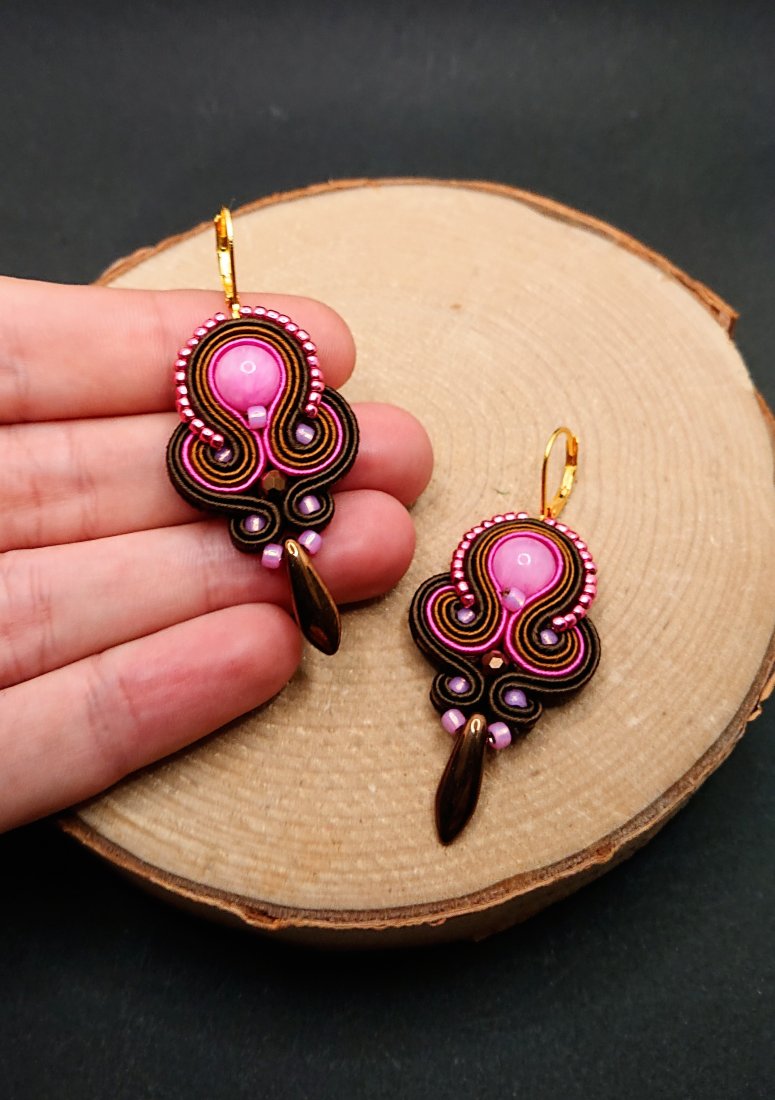 Tagi: #haftowane kolczyki, #sutasz, #szklane koraliki, #wiszące kolczyki