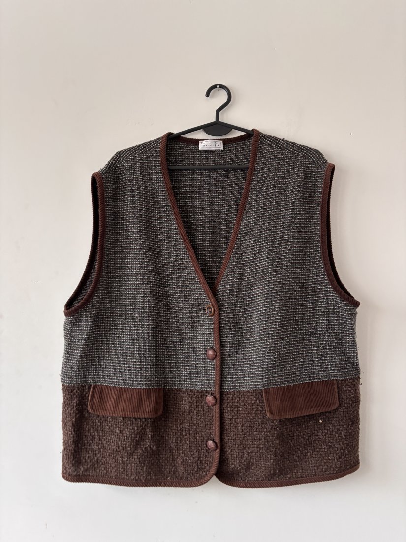 #vest #tweedvest #brownvest #greyvest #unisexstyle #vintagevest #retrostyle #fallfashion #winterwear #bonitabrand #warmvest #layeringpiece #casualwear #classiclook #streetstyle #everydaywear #pockets #corduroytrim #timeless #menswear #womenswear #neutraltones #cozywear #secondhandfashion #preowned #sustainablefashion #outerwear #fashionpiece #uniqueitem
