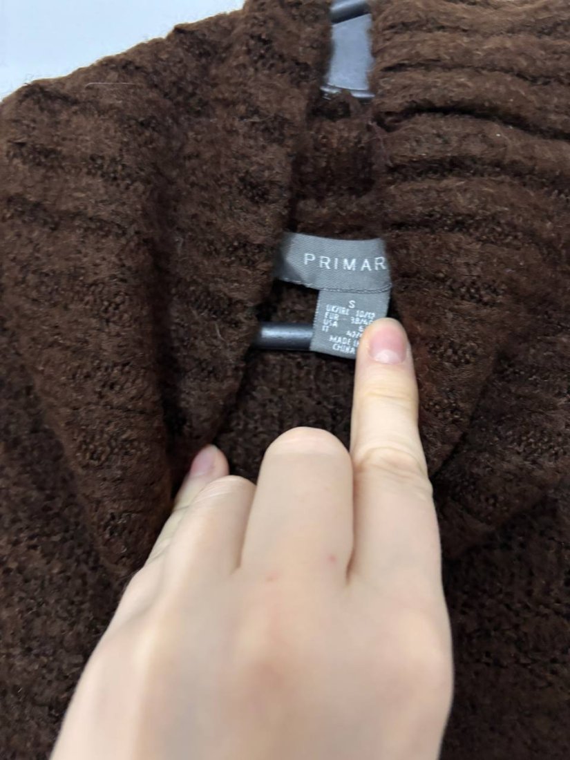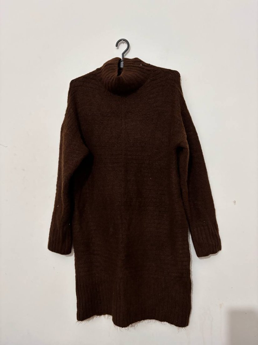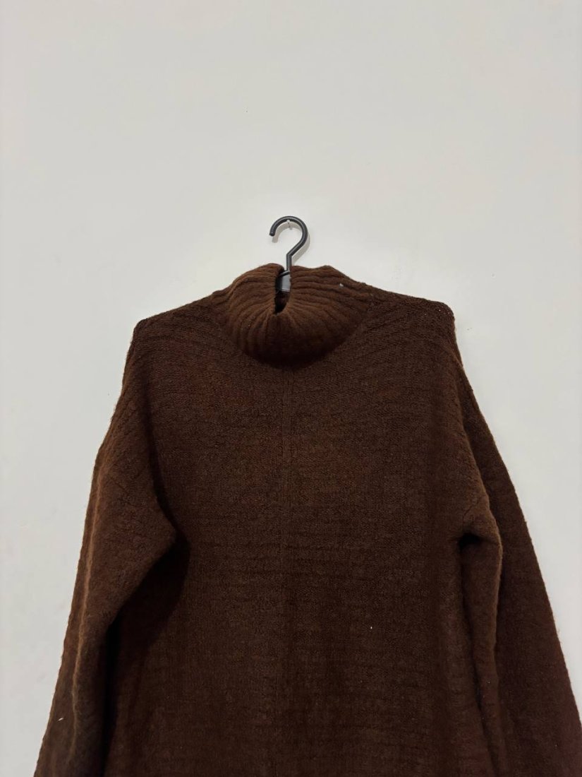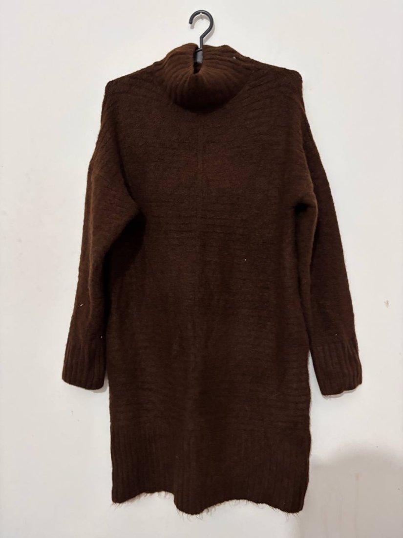 Ciepły, długi sweter z golfem marki Primark w pięknym, głębokim brązowym kolorze.