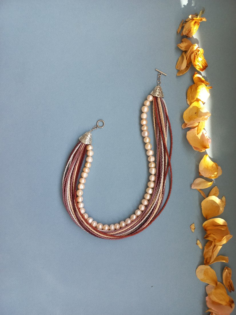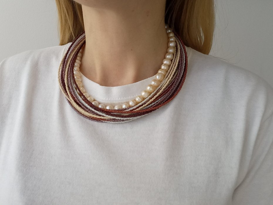 Naszyjnik wykonany z koralików i pereł naturalnych.