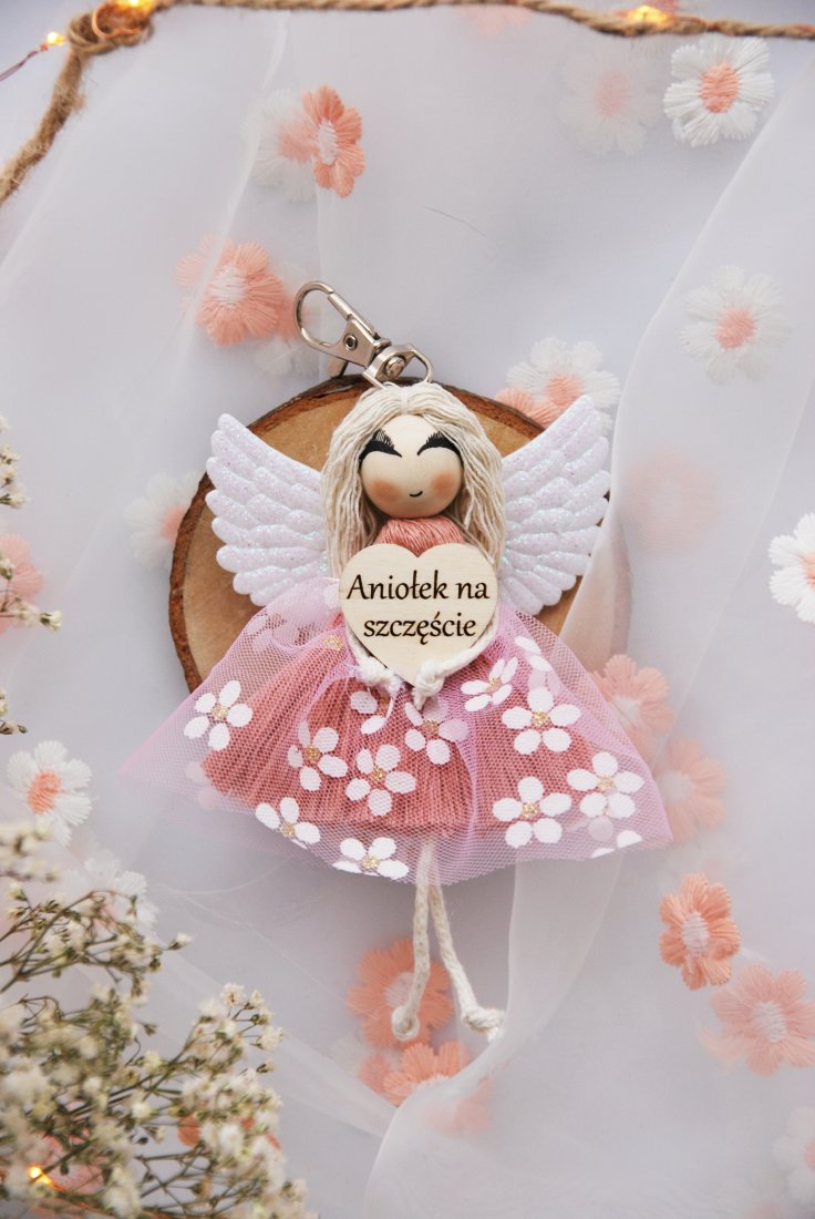 Uroczy brelok do kluczy - aniołek na szczęście.