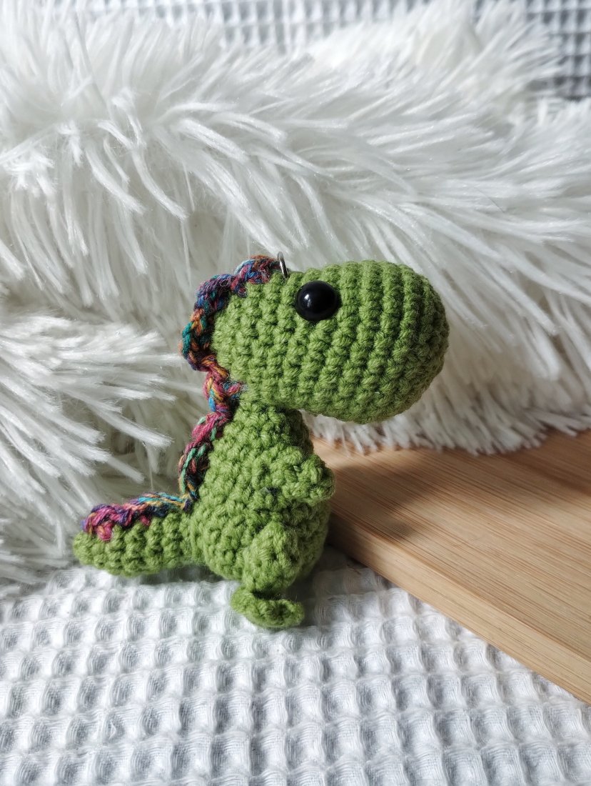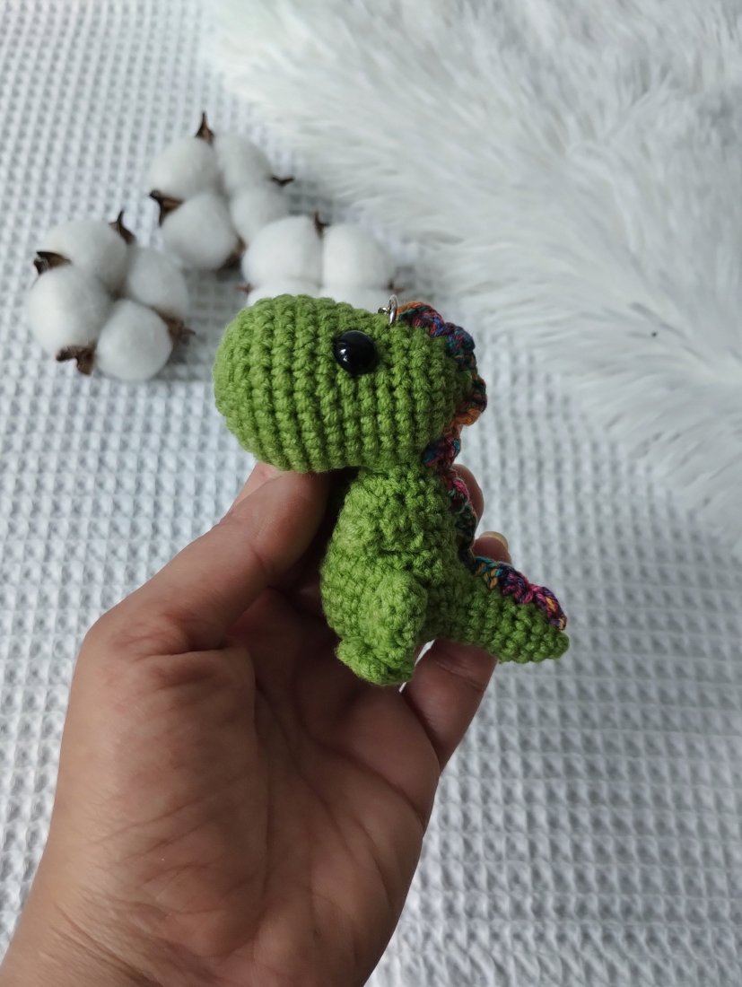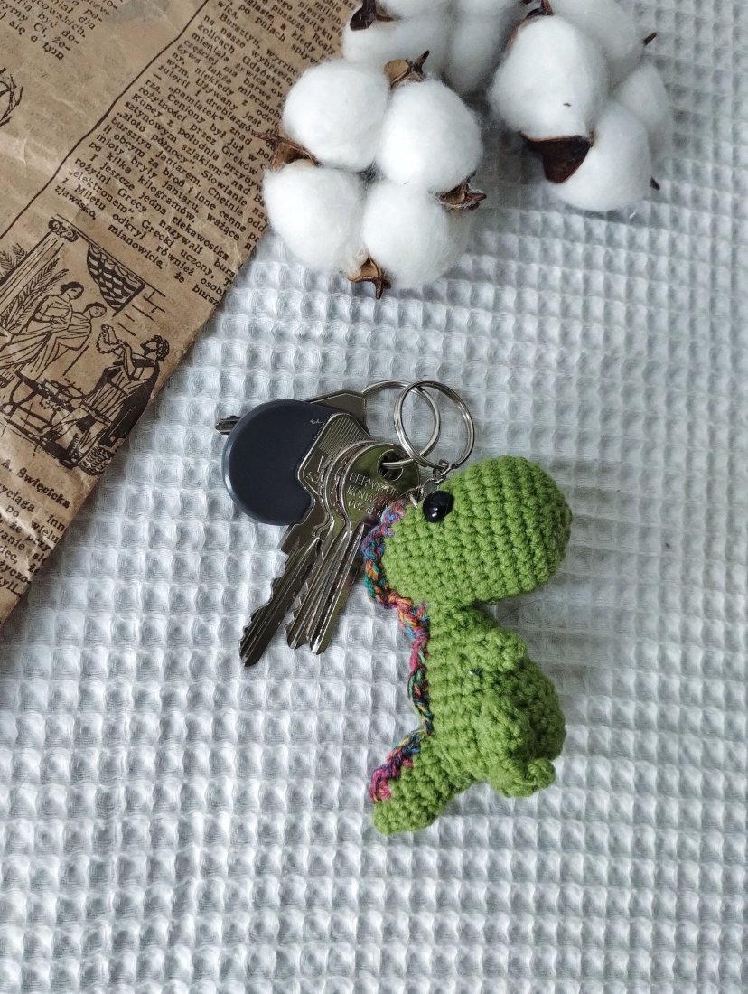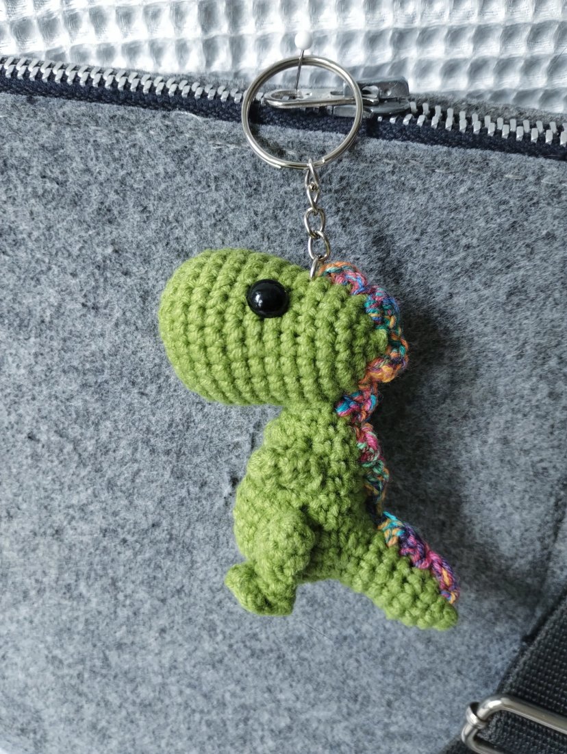 Tagi: #breloczek do kluczy dinozaur, #szydełkowy dinozaur, #zawieszka do plecaka t-rex, #zawieszka do toreby t-rex