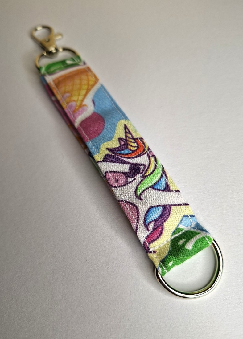 Masz dość szukania kluczy na dnie torby? A może chcesz dodać odrobinę radości swojej stylizacji? Ten breloczek to mały wielki bohater codzienności, stworzony w duchu zero waste z szalonych skrawków materiału w jednorożce, liście i lody.