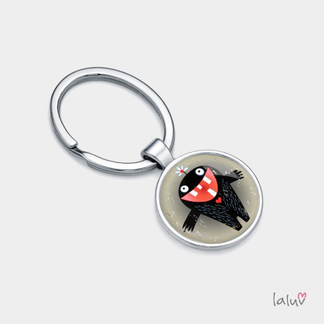 Ręcznie robiony brelok z wysokiej jakości grafiką zamkniętą pod wypukłym szkiełkiem i oprawioną w bazę w kolorze srebrnym.