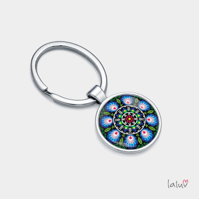 Ręcznie robiony brelok z wysokiej jakości grafiką zamkniętą pod wypukłym szkiełkiem i oprawioną w bazę w kolorze srebrnym.