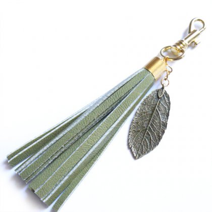 Witam, przedmiotem sprzedaży jest ręcznie zrobiony breloczek zawieszka do torebki lub kluczy. Brelok został wykonany z włoskiej skóry ekologicznej, ozdobnej zawieszki i pozłacanego karabińczyka. Długość całego breloczka z karabińczykiem 15 cm. Kolor: zielony. Doczepiony breloczek do suwaka lub rączki torebki wspaniale podkreśli fason każdej torebki. Serdecznie polecam :)