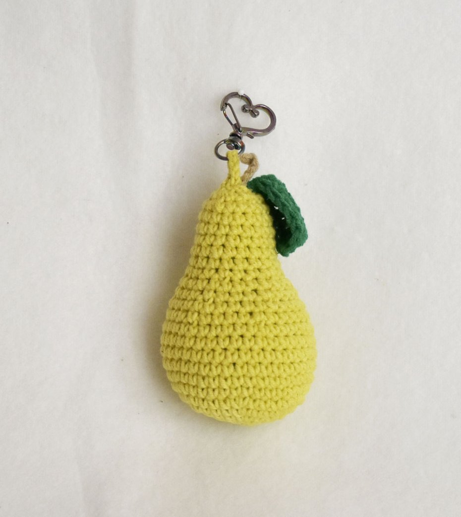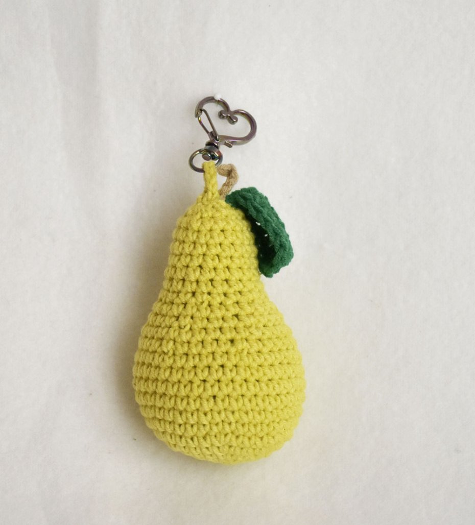 Uroczy brelok handmade w kształcie gruszki, wykonany ręcznie na szydełku z dbałością o każdy detal.