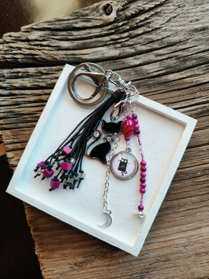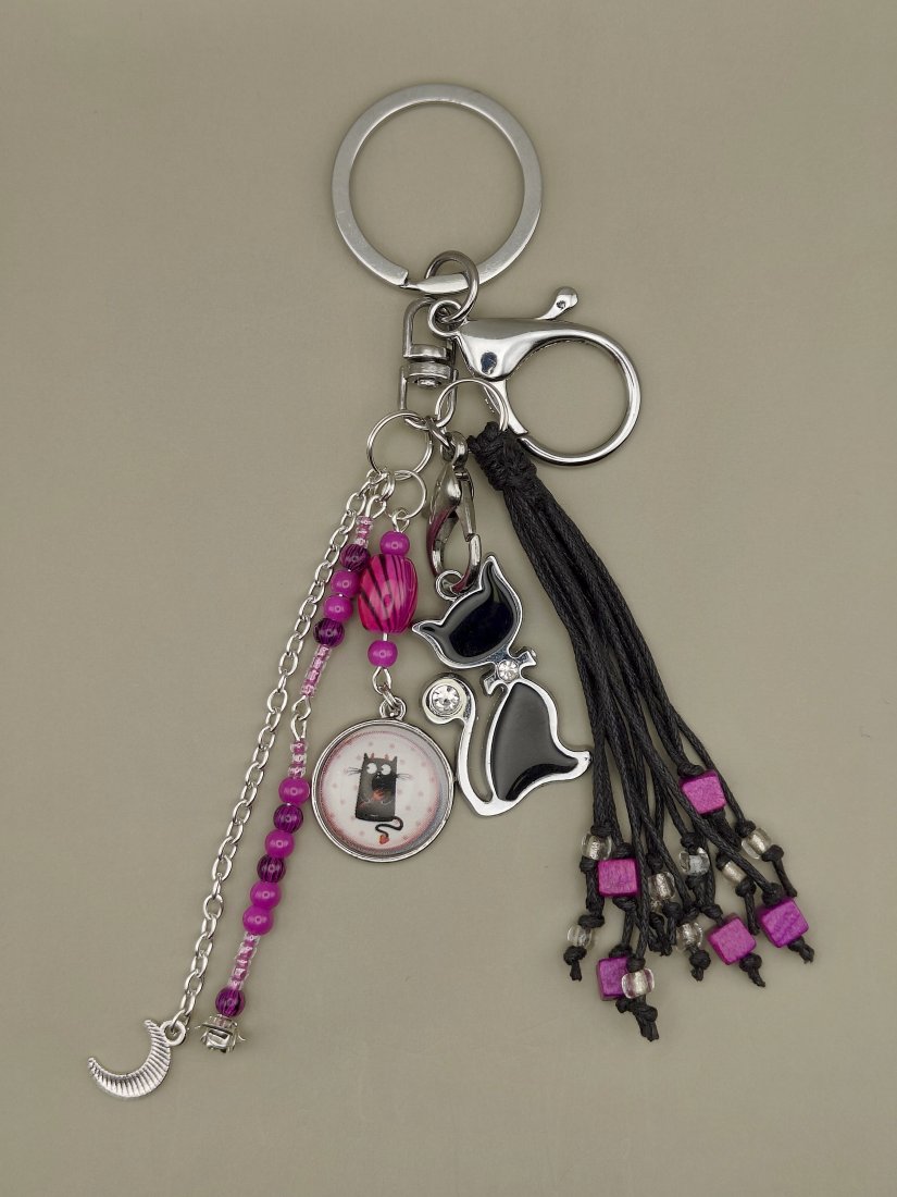 Stylowy brelok z motywem czarnego kota to idealny dodatek dla miłośników magii, tajemniczej estetyki i kocich akcentów. Połączenie czerni i intensywnego różu przyciąga wzrok, a drobne detale – jak księżycowy charms i dekoracyjny chwost – nadają mu wyjątkowego, nieco mistycznego charakteru. Świetnie sprawdzi się jako ozdoba kluczy, torebki lub plecaka, a także jako drobny prezent z charakterem.