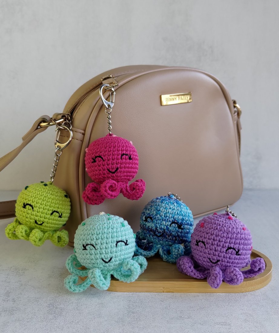 Szydełkowy brelok w kształcie ośmiornic to doskonały dodatek do plecaka/torebki/kluczy oraz wspaniały prezent na każdą okazję i wyjątkowy moment.