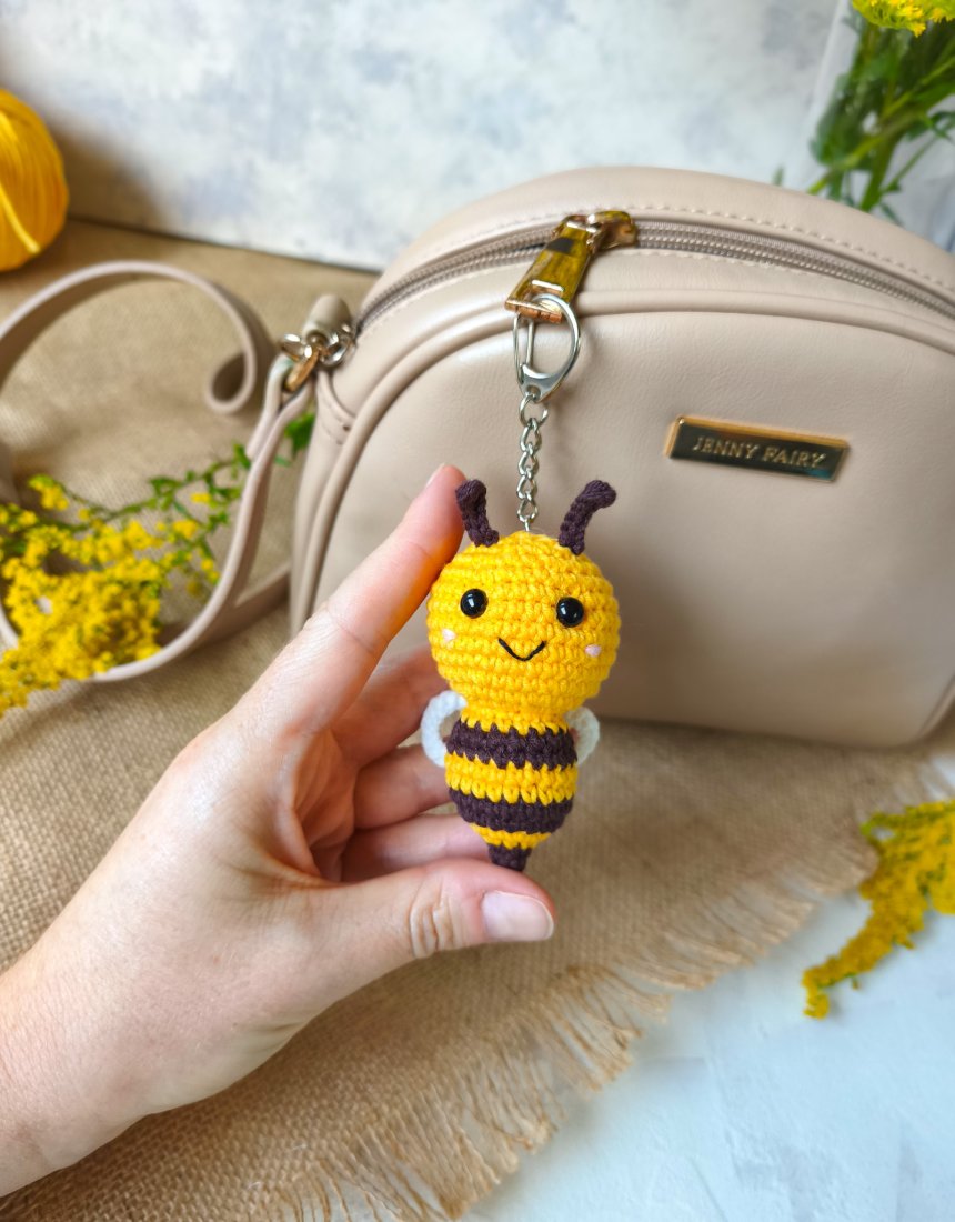 Szydełkowy brelok pszczółka będzie doskonałym dodatkiem do plecaka/torebki/kluczy oraz wspaniałym prezentem na każdą okazję i wyjątkowy moment.