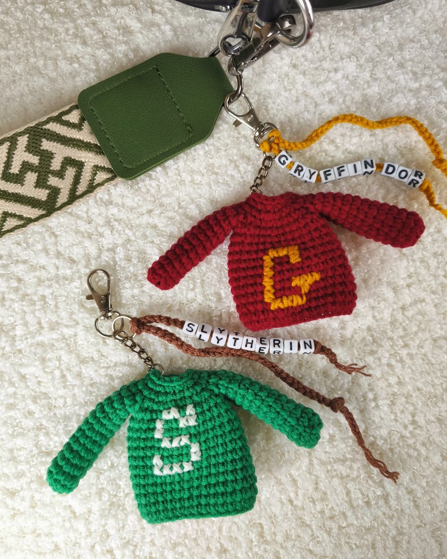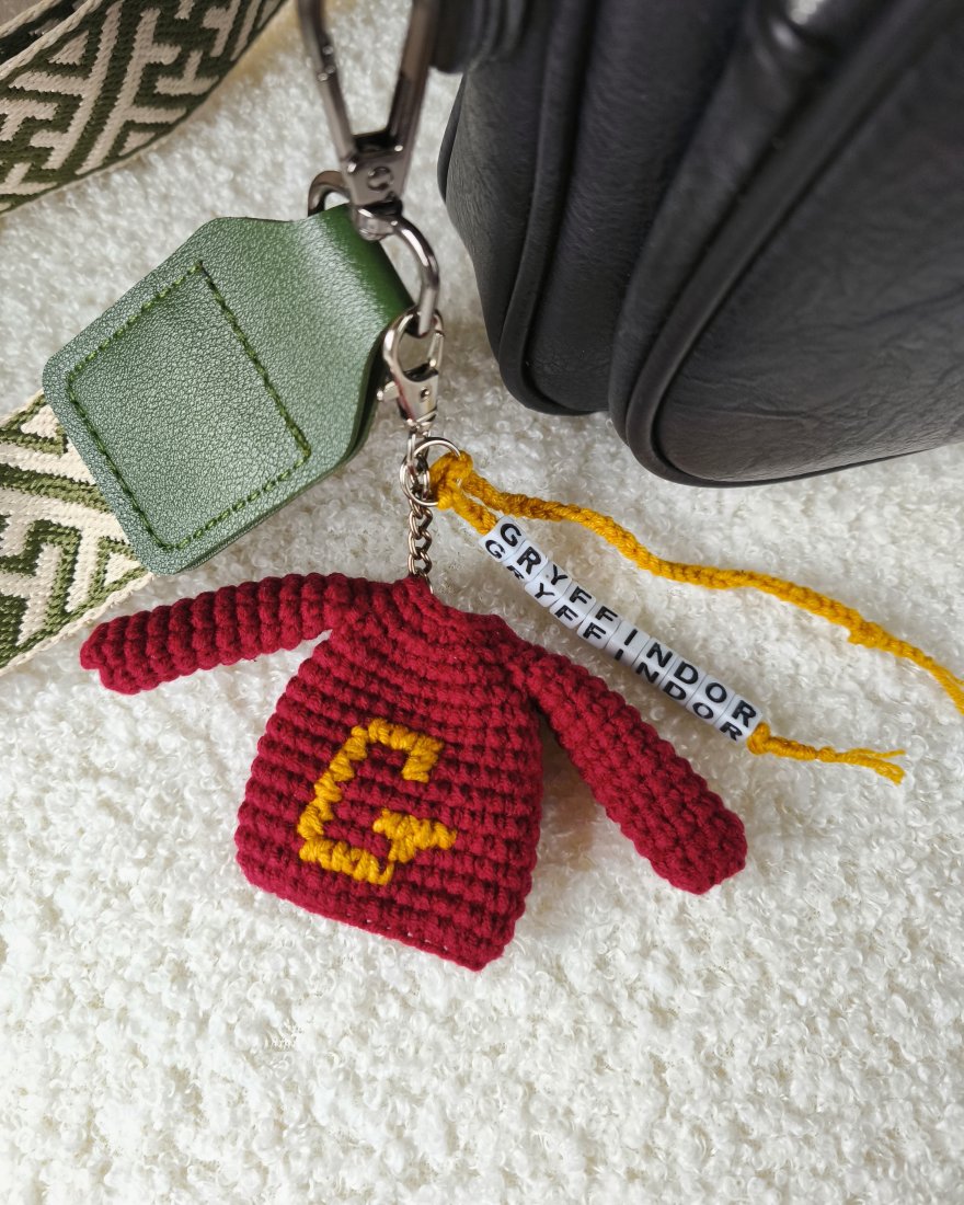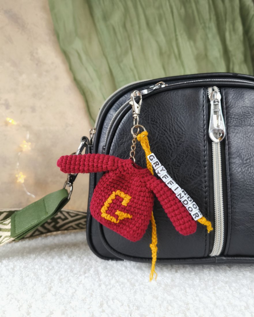 Ręcznie wykonany brelok w kształcie sweterka z literą inspirowany światem magii i fantazji.
