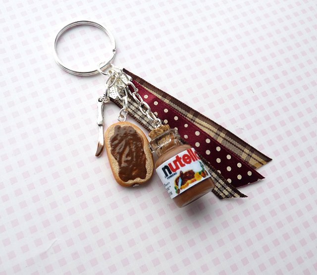 Oryginalny brelok ze słoiczkiem kremu czekoladowego, kanapką i nożykiem:) długość breloka: ok.10cm, wysokość słoiczka: 3cm. Wysyłam ozdobnie zapakowany;)