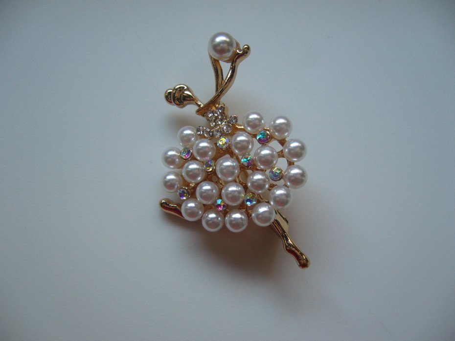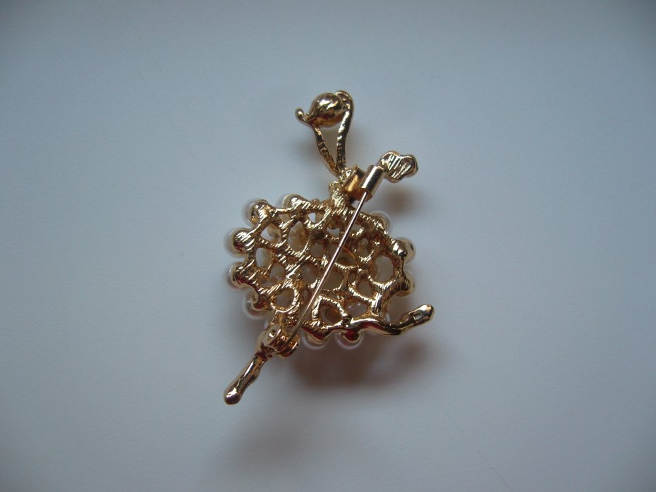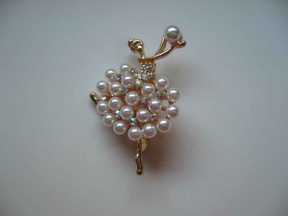 Pozłacana broszka baletnica,zdobiona kryształkami i perełkami
