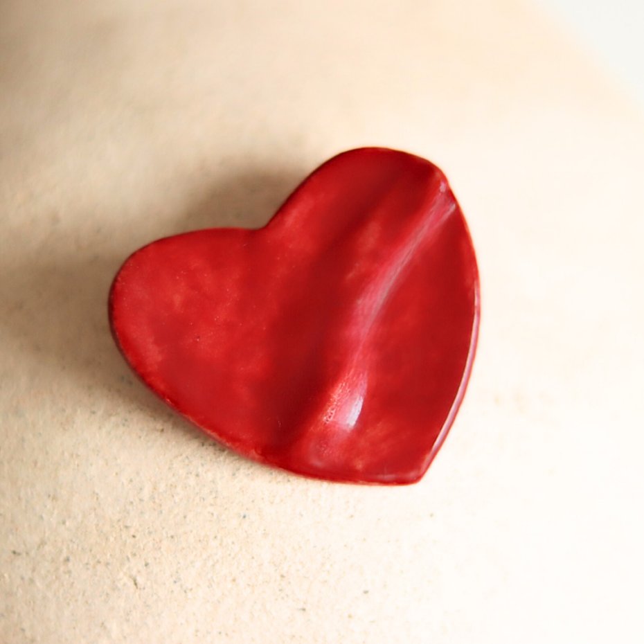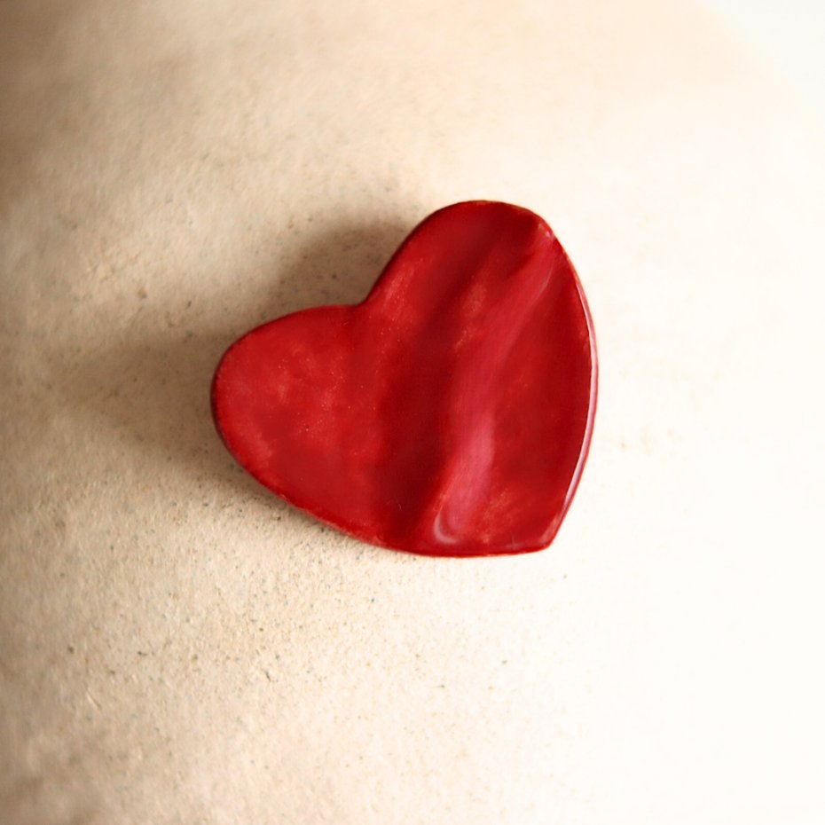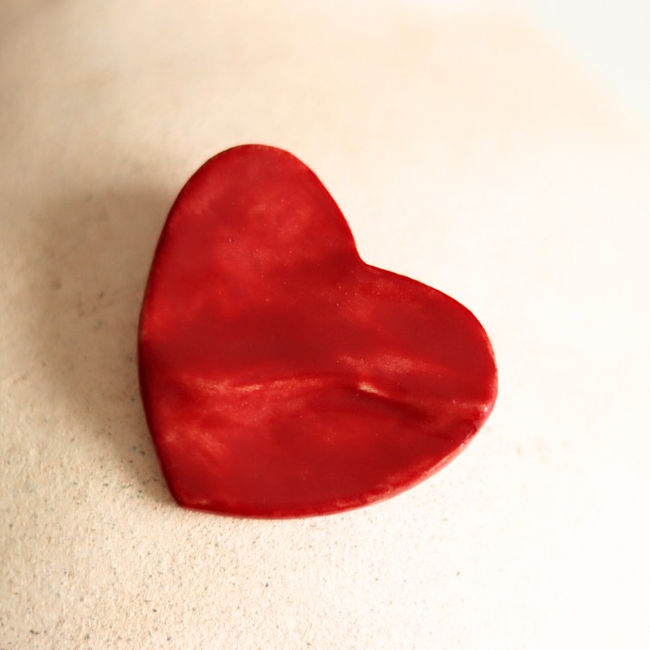 Ceramiczna broszka, czerwone "pogniecione" serce.