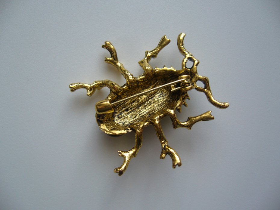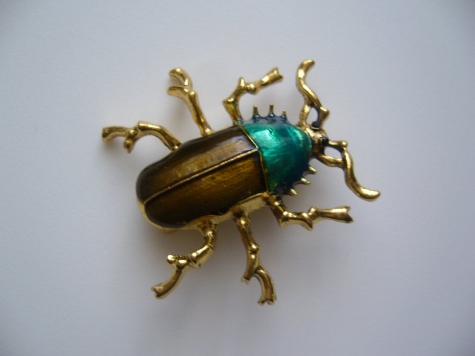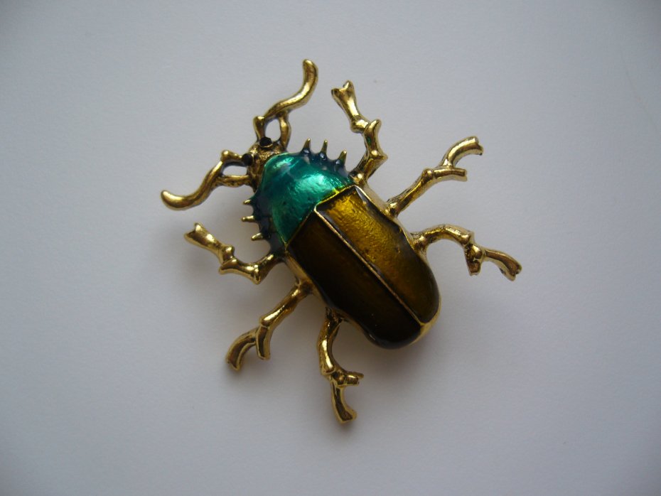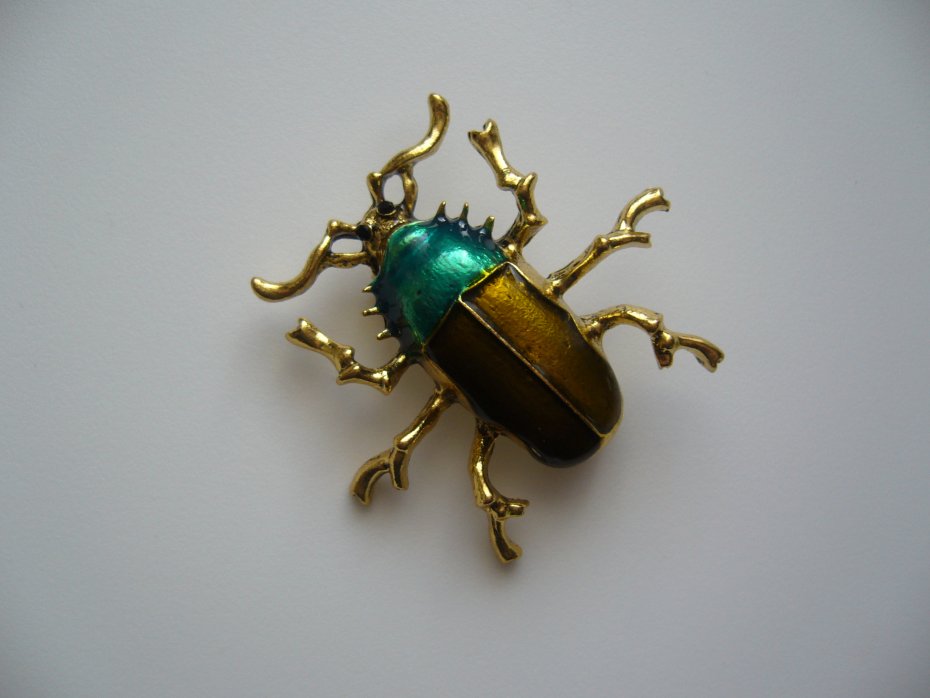 POZŁACANA EMALIOWANA BROSZKA CHRABĄSZCZ