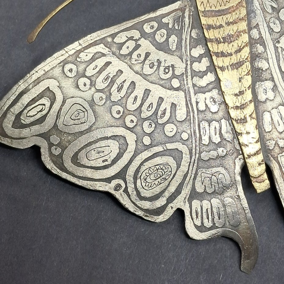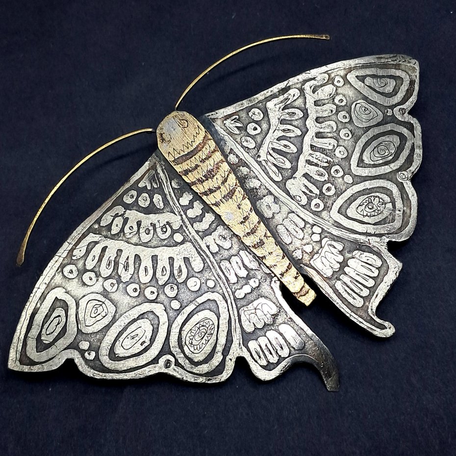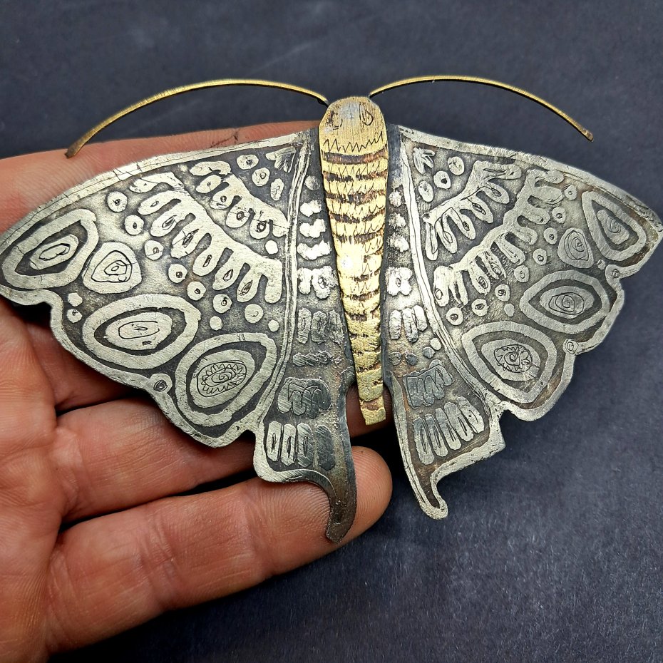 Ćma to efektowna, elegancka broszka wykonana ręcznie z metalu alpaka i mosiądzu.