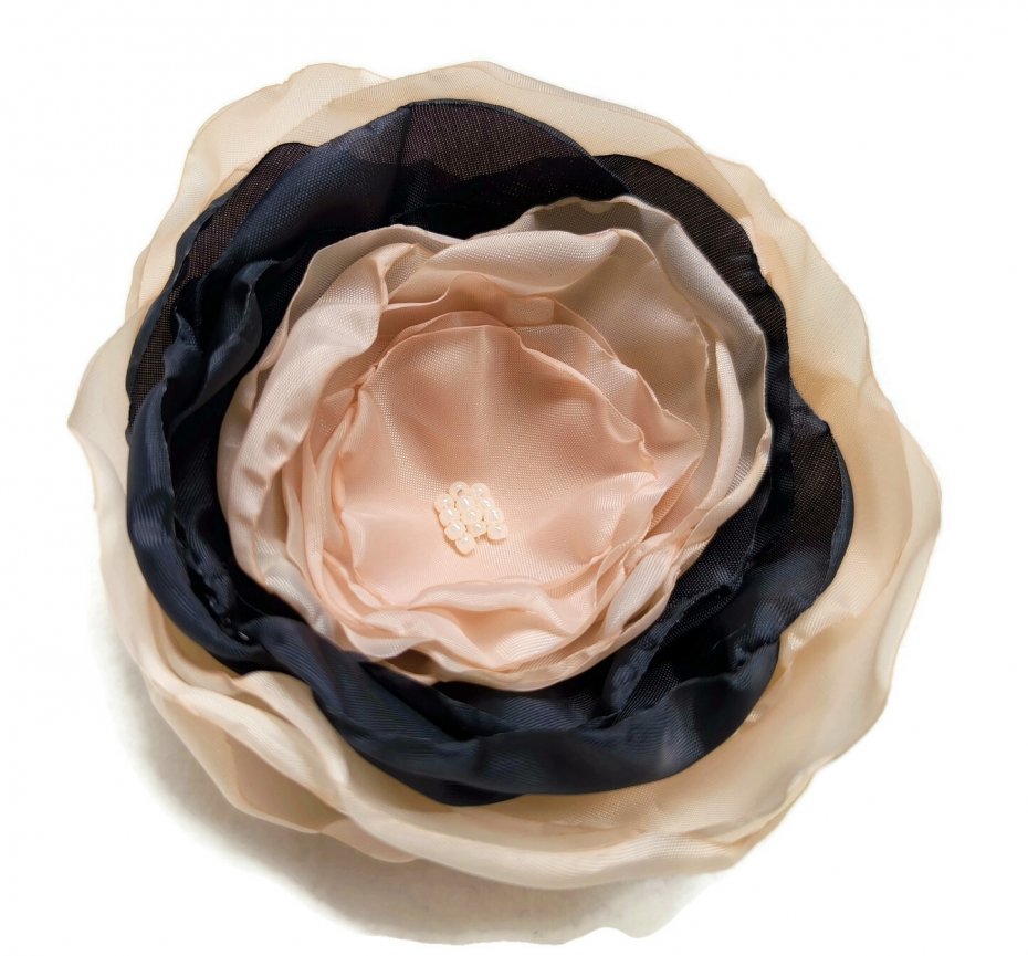 4.  > Broszka czarna z beżem kwiatek kwiat 10cm (nr 7082186)
