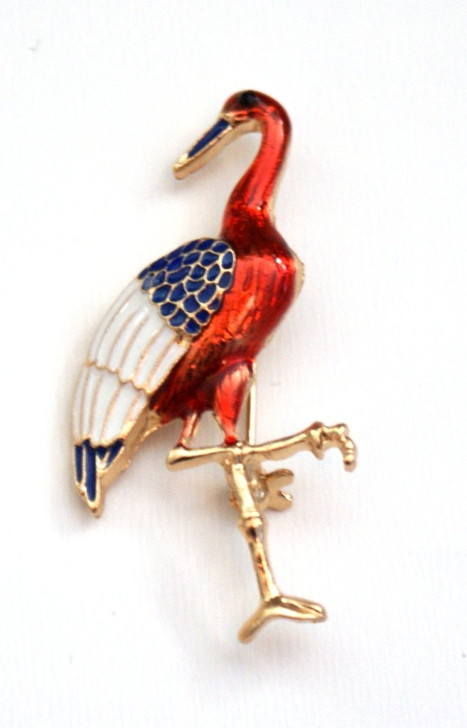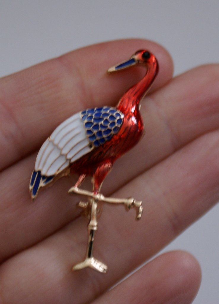 Niepowtarzalna emaliowana broszka żuraw.