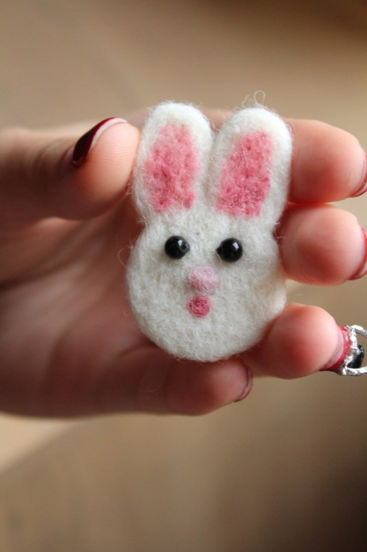 Ręcznie wykonana broszka filcowana w kształcie zając, zrobiona z naturalnej wełny metodą filcowania na sucho. Każdy egzemplarz powstaje ręcznie, dzięki czemu jest unikalny i różni się od innych w drobnych detalach.