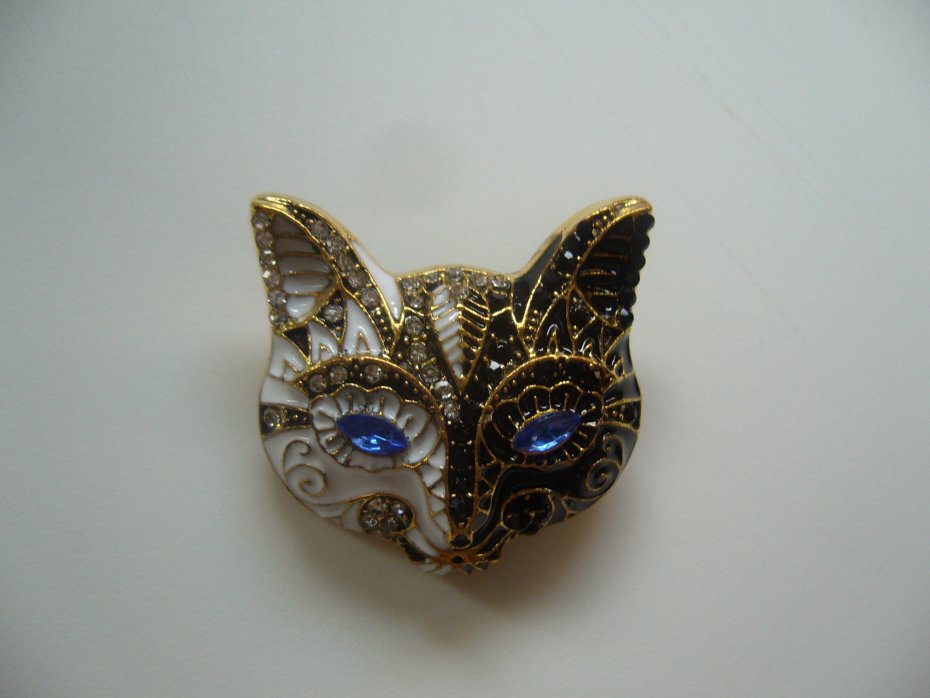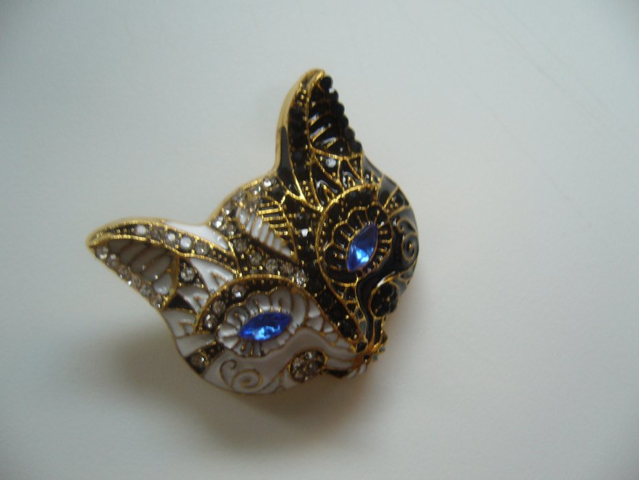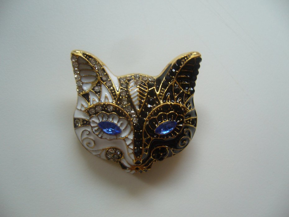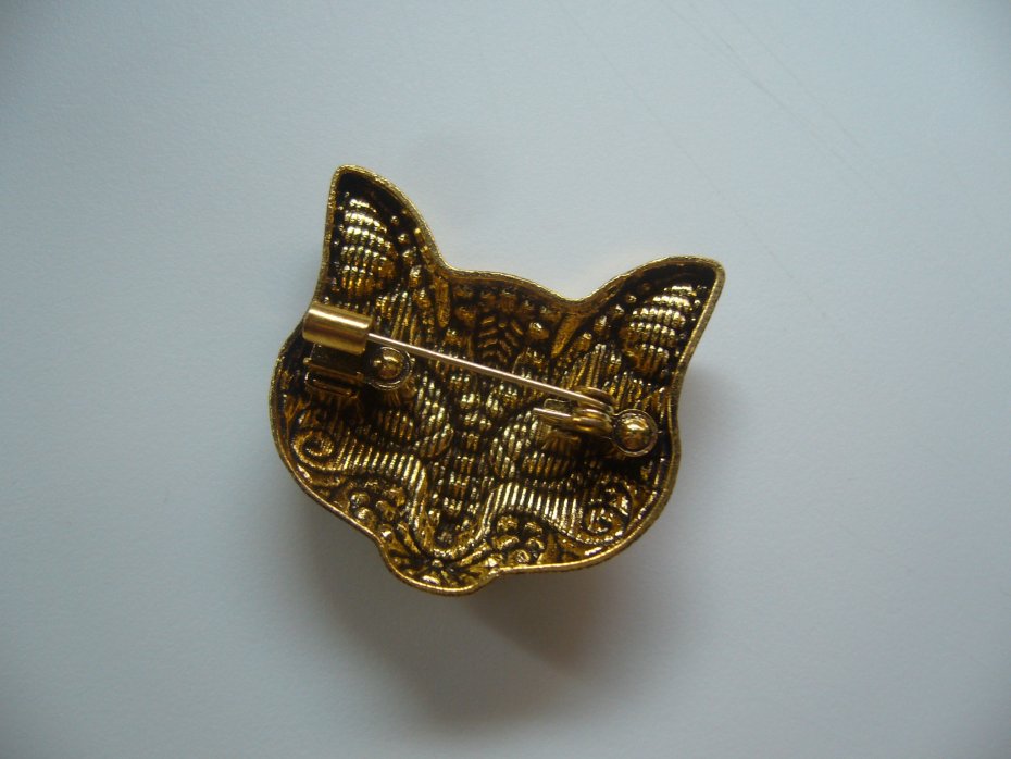 UROCZA POZŁACANA EMALIOWANA BROSZKA GŁOWA KOTA