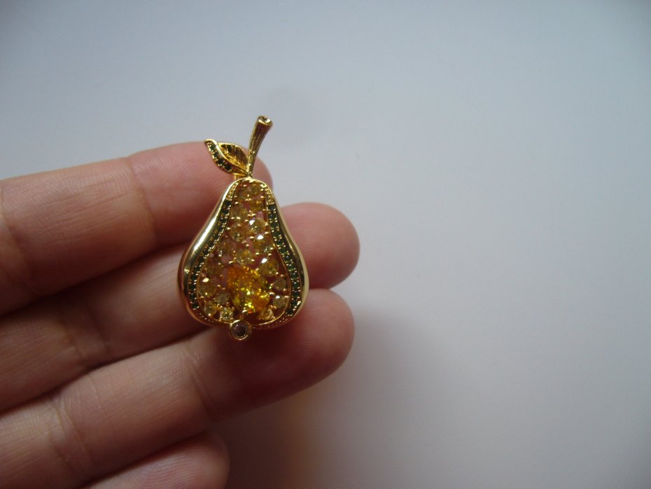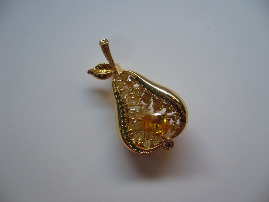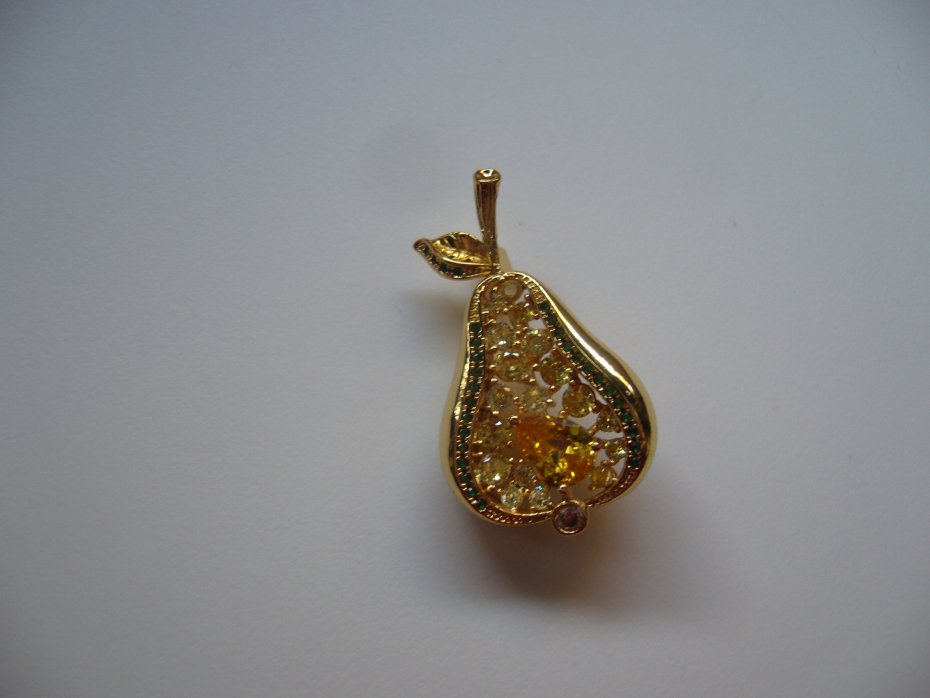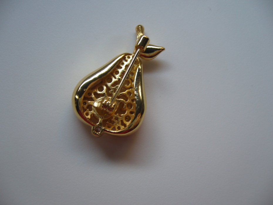 PIĘKNA POZŁACANA BROSZKA GRUSZKA , ZDOBIONA KRYSZTAŁKAMI