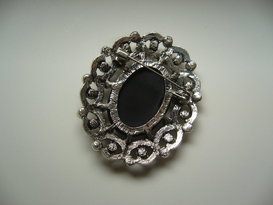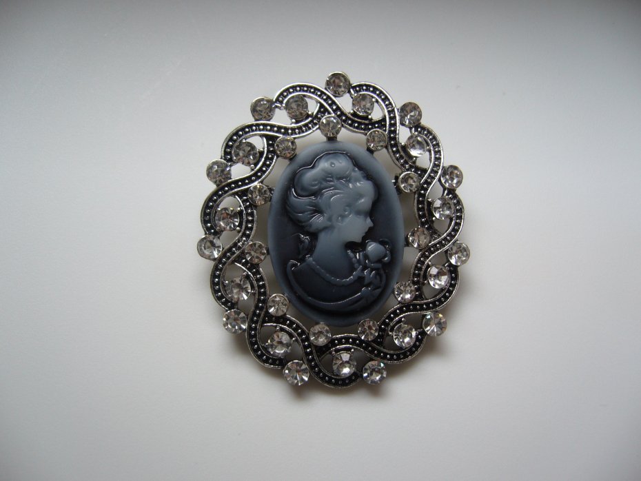 POSREBRZNA BROSZKA KAMEA ZDOBIONA CYRKONIAMI