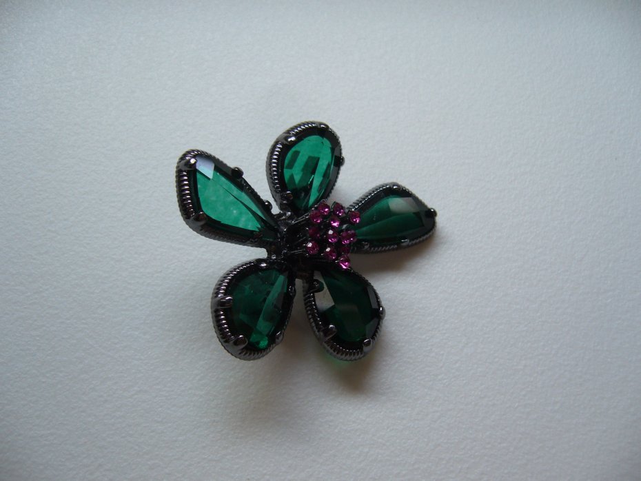 PIĘKNA BROSZKA KWIAT WYKONANA Z METALU OKSYDOWANEGO WYSADZANA CYRKONIAMI W KOLORZE RÓŻOWYM