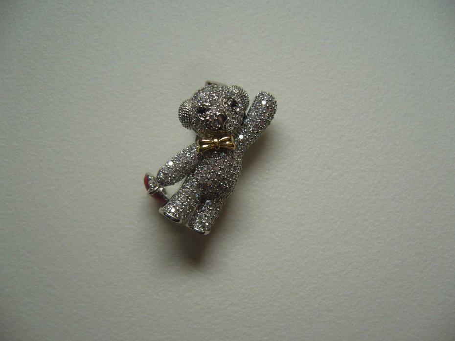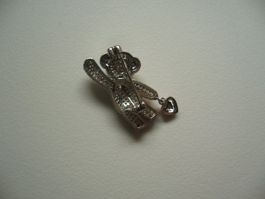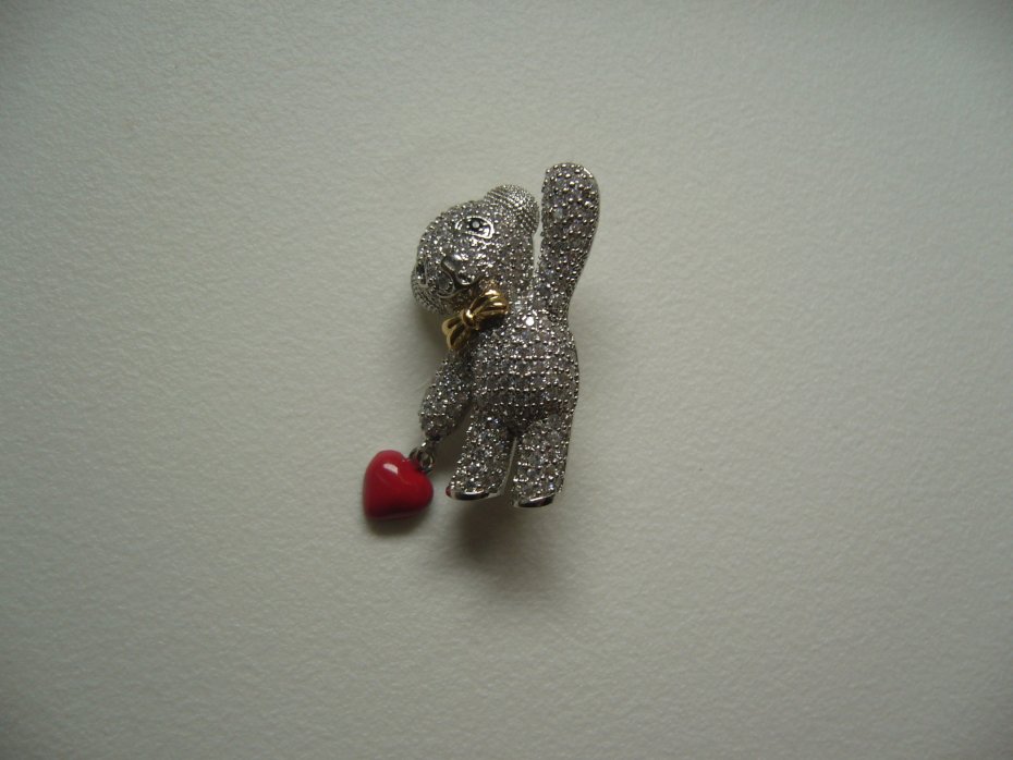 UROCZA POSREBRZANA BROSZKA MIŚ Z SERDUSZKIEM ( SERDUSZKO JEST RUCHOME POKRYTE EMALIĄ )