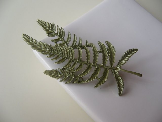 PIĘKNA METALOWA BROSZKA PAPROĆ