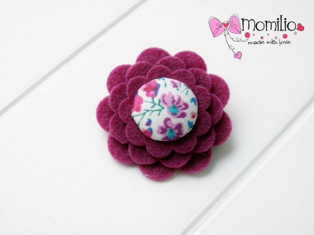 Broszka kwiatuszek uszyty z filcu. Śr. kwiatuszka 3,8 cm Zapięcie broszkowe.