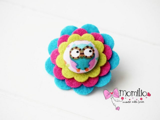 Broszka kwiatuszek uszyty z filcu. Śr. kwiatuszka 3,8 cm Zapięcie broszkowe.