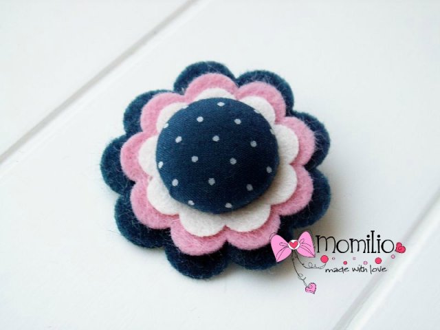 Broszka kwiatuszek uszyty z filcu. Śr. kwiatuszka 3,8 cm Zapięcie broszkowe.