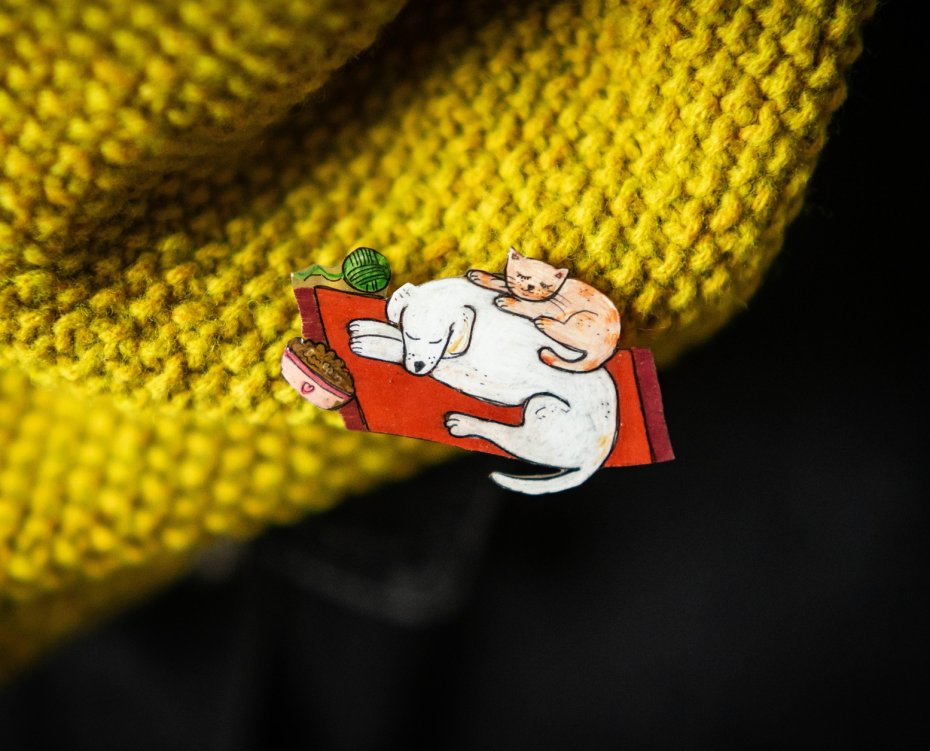 Poznaj broszkę Zośkę w jesiennych kolorach, która jak zwykle ma świetne wyczucie stylu — tym razem tak dobre, że nawet pies Rekes postanowił ubrać się tak samo! Ten zgrany, modny duet wygląda jak gotowy na sesję zdjęciową wśród spadających liści. Idealny dodatek dla osób, które lubią jesień, humor i odrobinę zwariowanego klimatu.