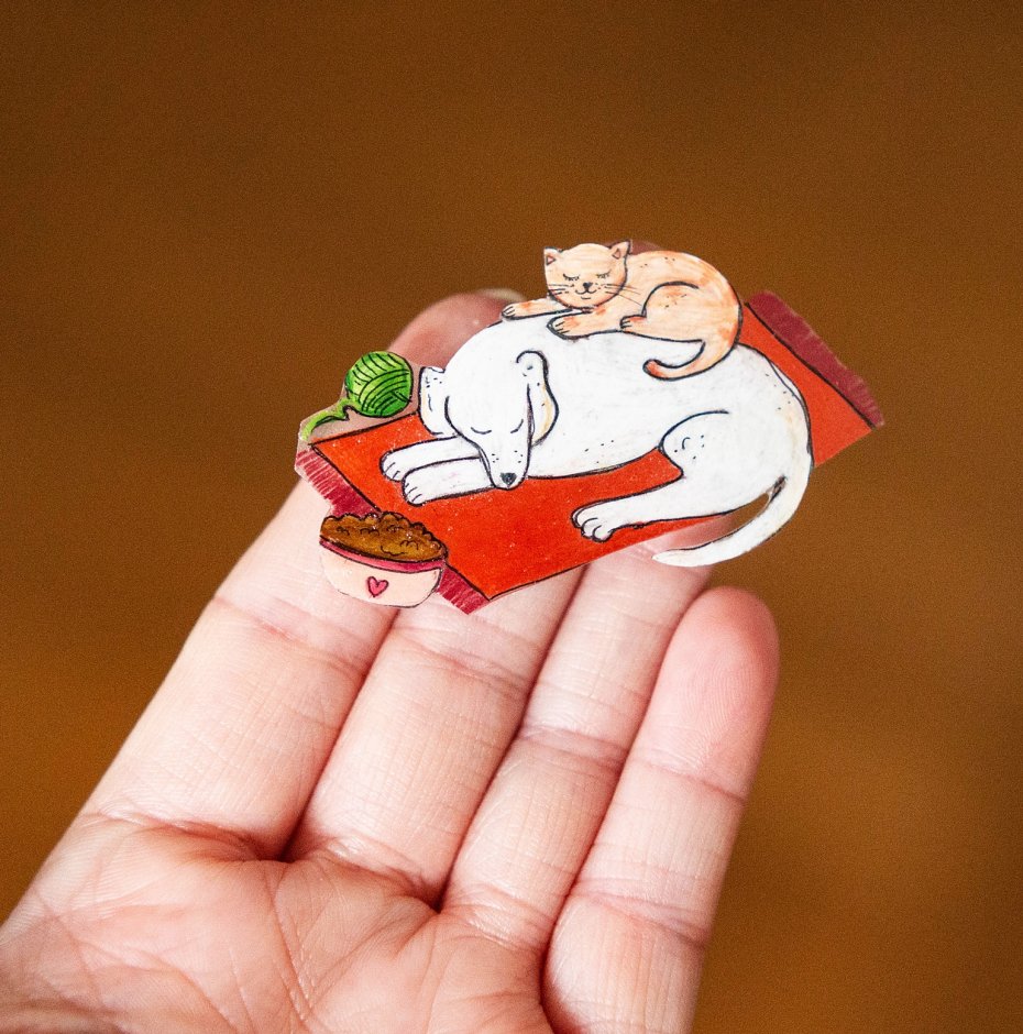 Piękna broszka ręcznie rysowana, zabezpieczona lakierem ekologicznym. Powierzchnia broszki jest błyszcząca. Na jej lakierowanej powierzchni mogą występować małe pęcherzyki powietrza.
