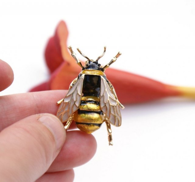 Nowa, urocza broszka z pszczołą w kolorze starego złota.