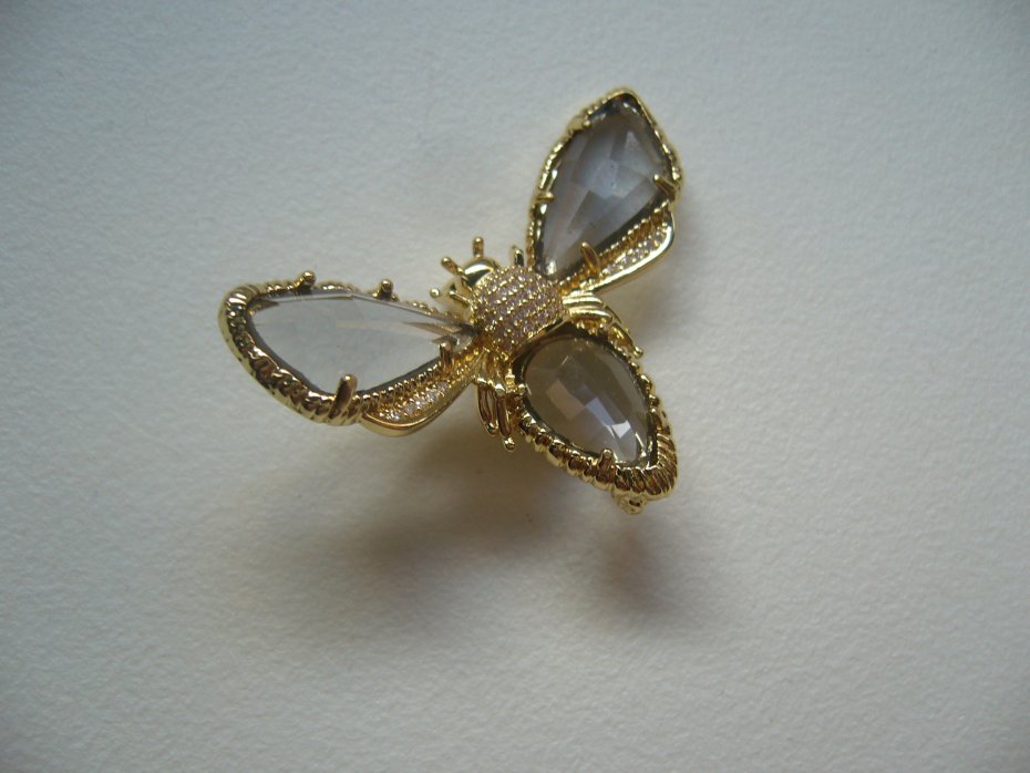 POZŁACANA BROSZKA OWAD PSZCZOŁA WYSADZANA CYRKONIAMI