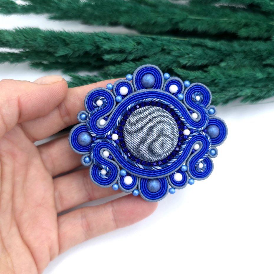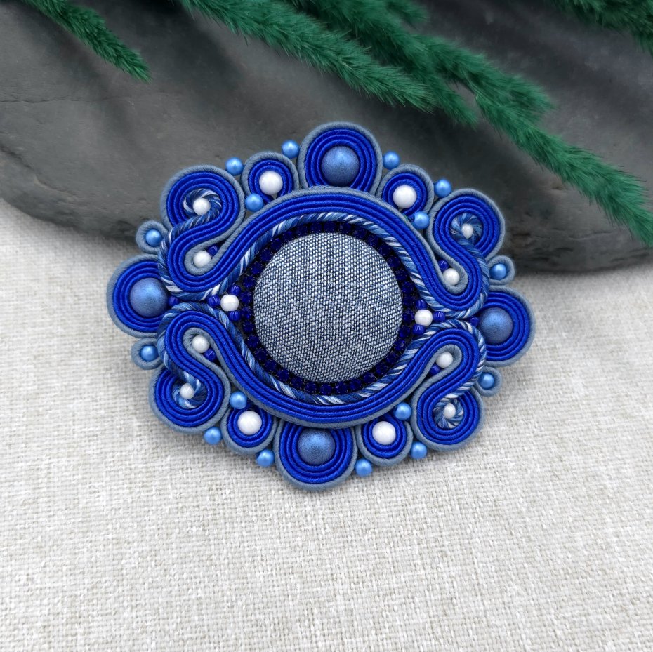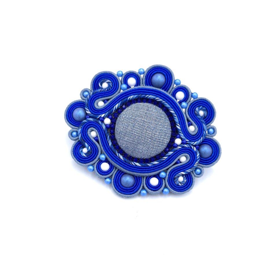 Broszka sutasz w odcieniach niebieskiego ma w sobie mnóstwo uroku.