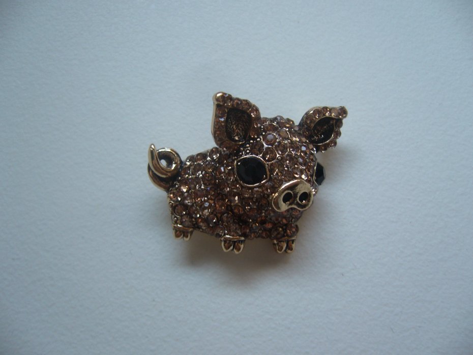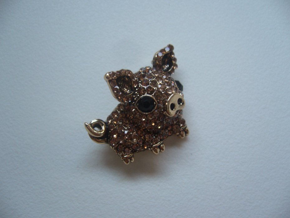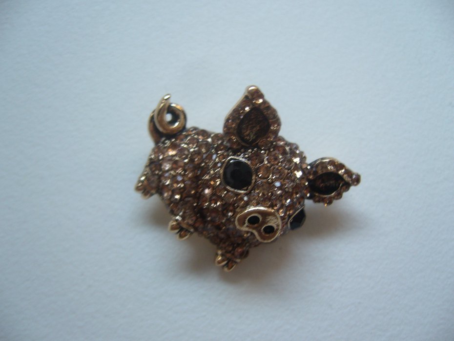 UROCZA POZŁACANA BROSZKA ŚWINKA ZDOBIONA KRYSZTAŁKAMI